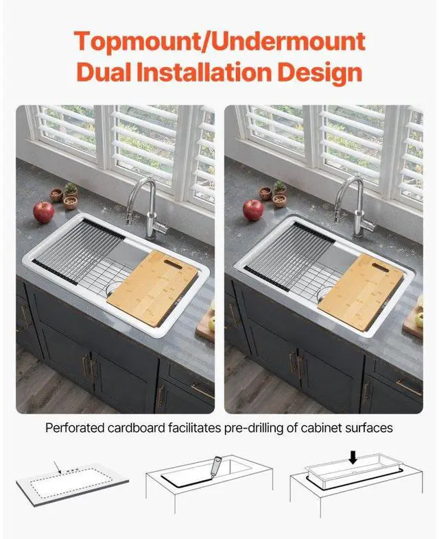 33x19 in Farmhouse Sink Topmount Undermount Kitchen Single Bowl Basin Fireclay High-Temperature Durable Material Extra-Large Capacity Integrated Workstation User-Friendly Design Easy Installation High-End Accessory Set Exterior Dimension: 835x485x254 mm / 32.87 x 19.09 x 10.00 inch, Internal