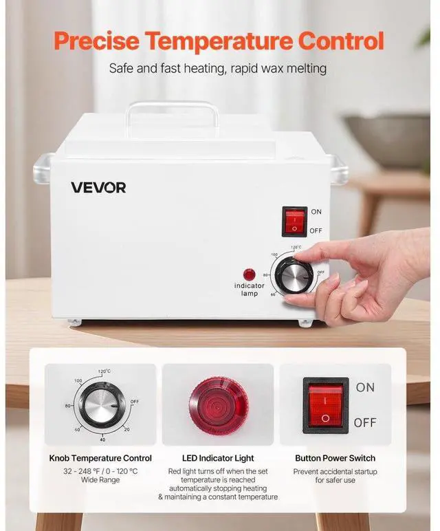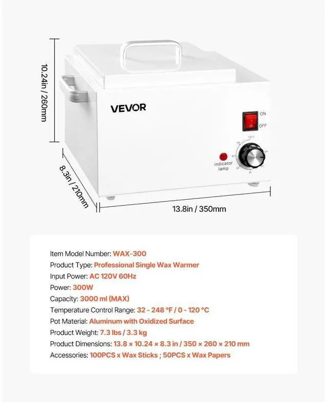 VEVOR Single Wax Warmer 3000ML 300W Professional Wax Heater Pot for Hair Removal Even Heating High-Quality Aluminum Pot 4 Steps to Quickly Melt Wax Suitable for the Whole Body Large Capacity Adjustable