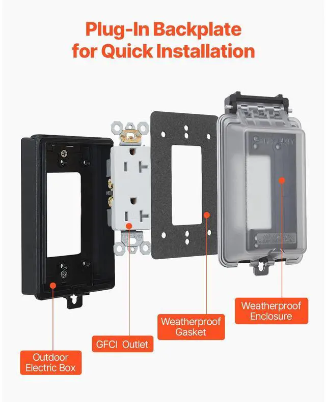 Outdoor Outlet Cover 1-Gang Lockable Weatherproof Electrical Outlet Cover Weatherproof Outlet Cover Waterproof and Dustproof Easy to Install 6-in-1 Configuration Durable and Secure Flip-Lid