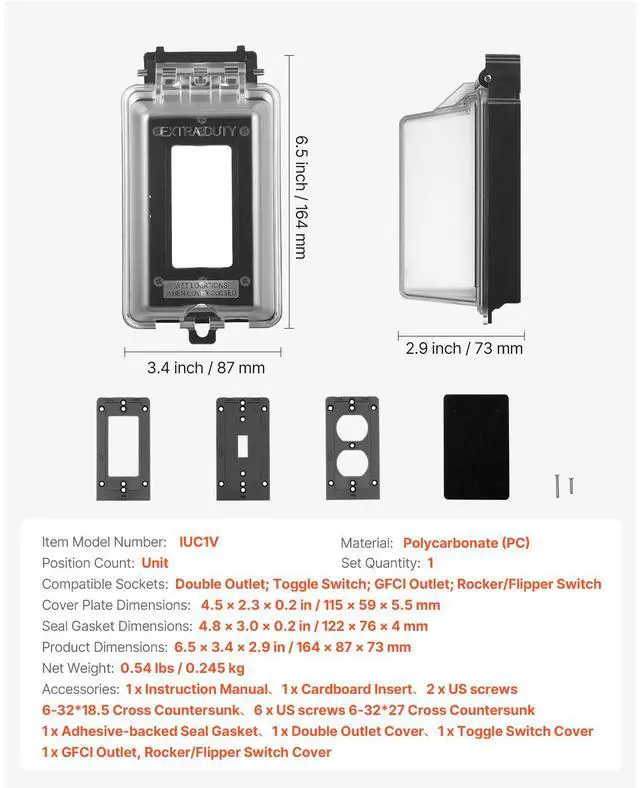 Compatible Sockets: Double Outlet; Toggle Switch; GFCI Outlet; Rocker/Flipper Switch, Cover