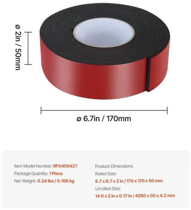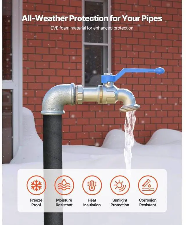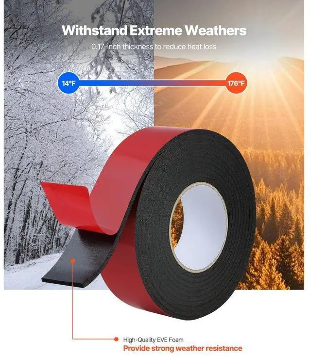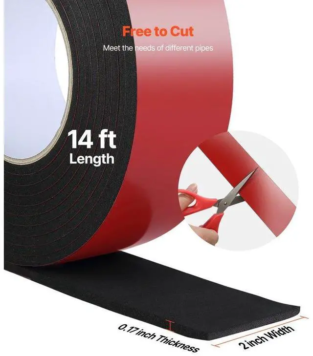 VEVOR Pipe Insulation Wrap 14FT x 2-inch Pipe Insulation Foam Tape Self-Adhesive Durable to Use EVA Foam Self-Adhesive Backing Wide Range of Applications Easy Installation Product Size Item
