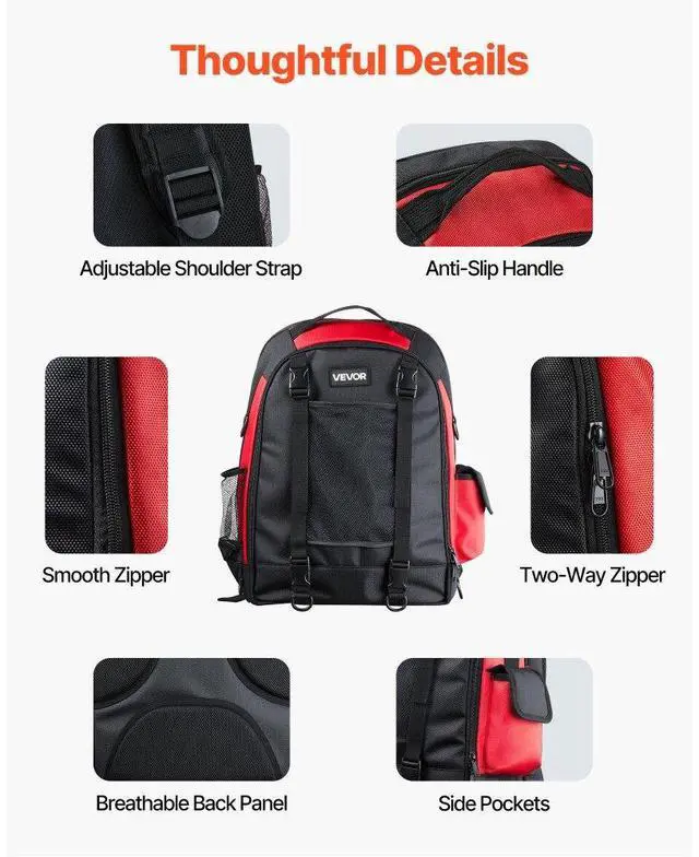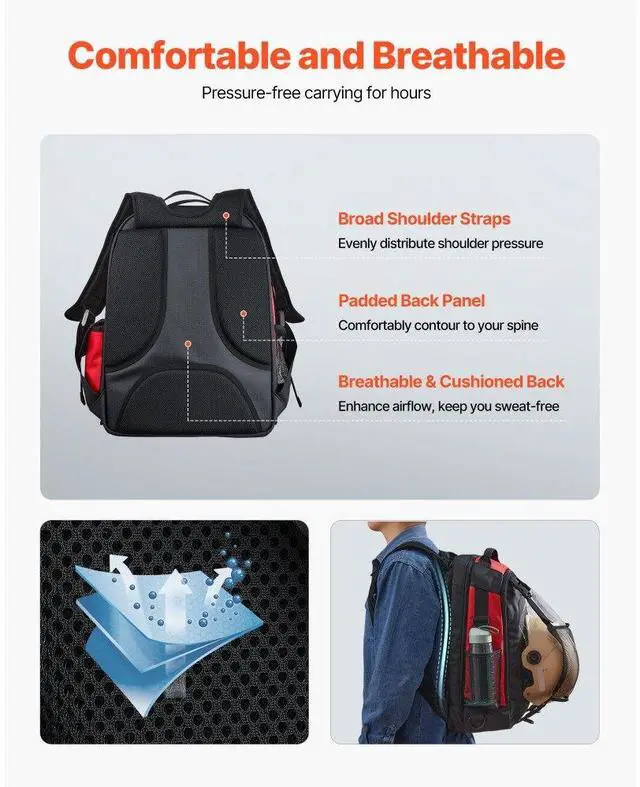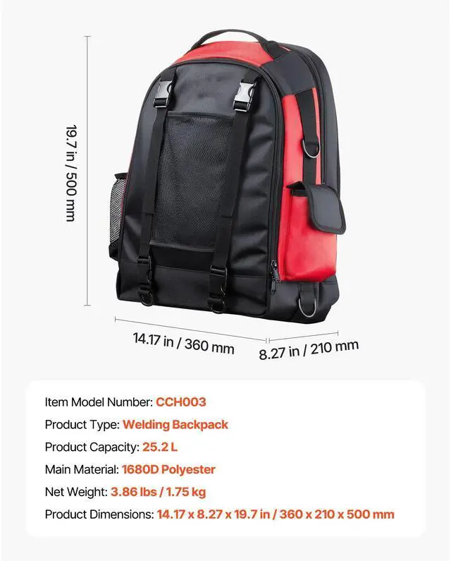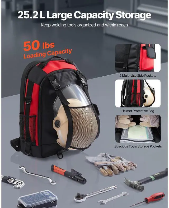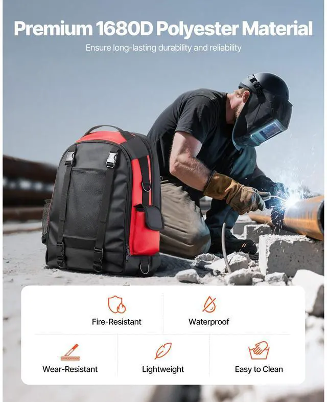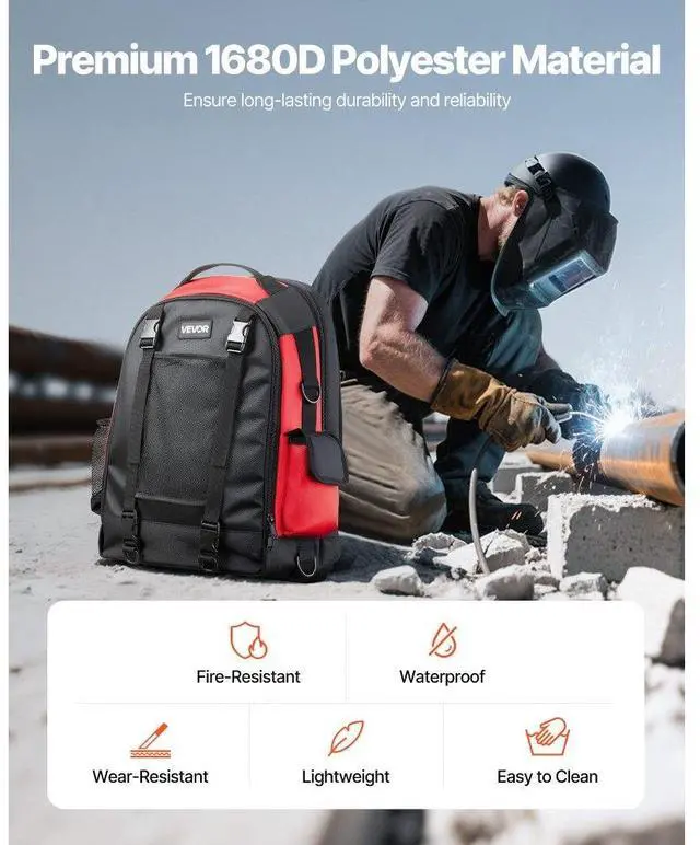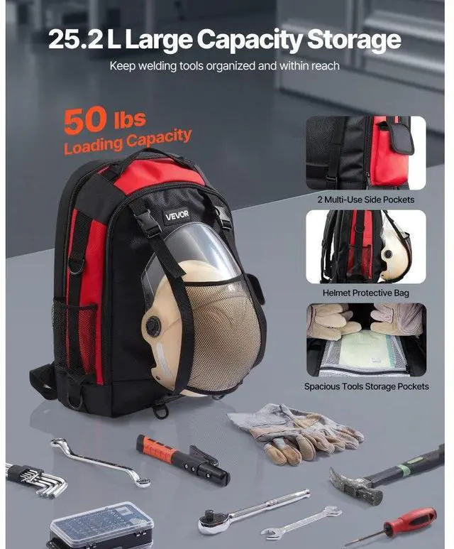 VEVOR 25.2L Welding Backpack 1680D Polyester Welder Backpack for Tool and Helmet Large-Capacity Storage Reduce Carrying Pressure Breathable & Comfortable Durable Material Thoughtful Designs Multi-Functional Use