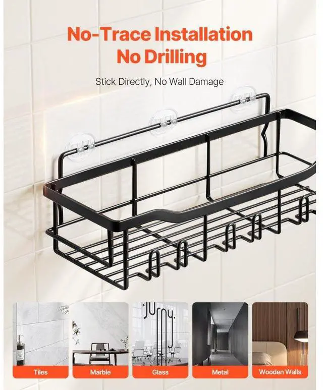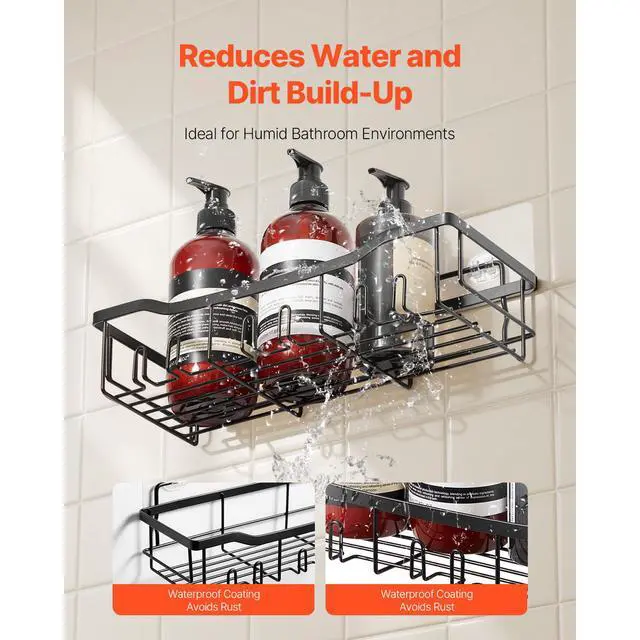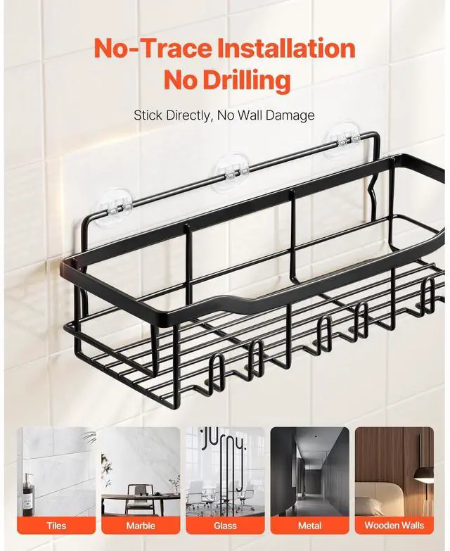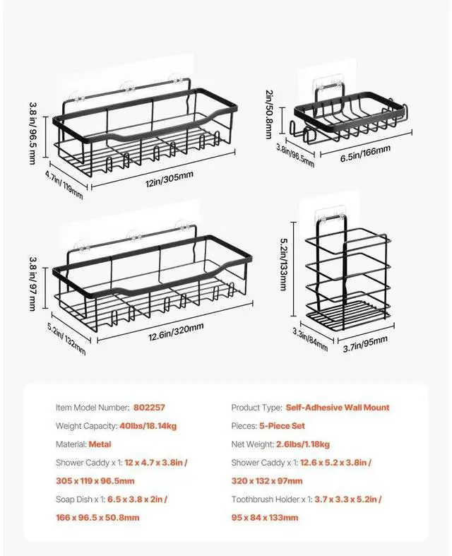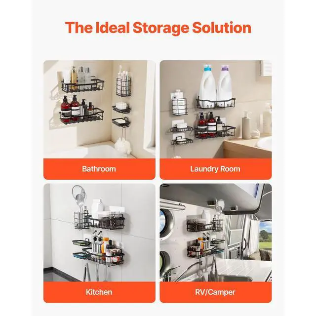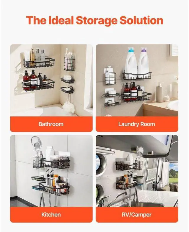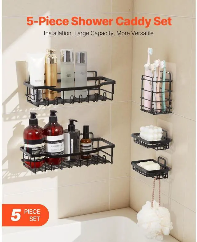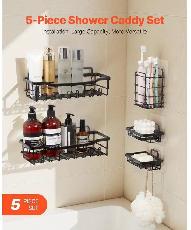 Shower Caddy 5 Pack Adhesive Bathroom Shower Storage Organization Shelves Rack Extra-Large Capacity Strong Weight Capacity No-Trace Installation Superior Coating Wide Compatibility Easy Installation