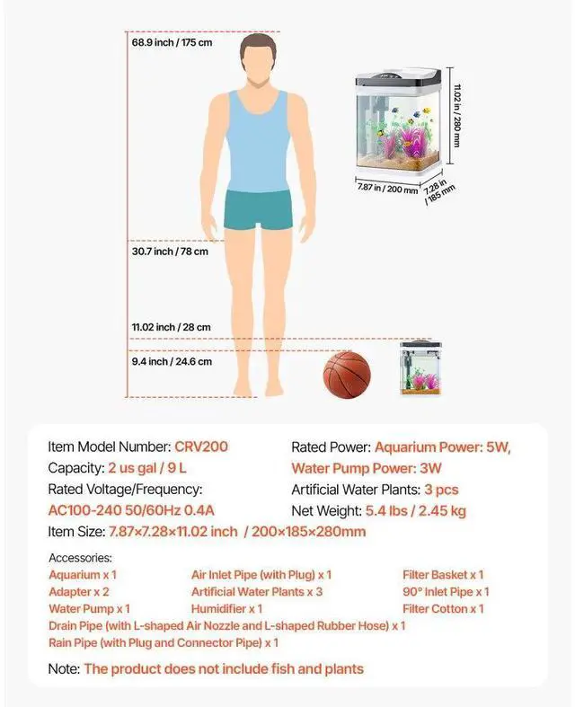 2 Gallon Fish Tank Aquarium LED Smart Square Clear Glass 7 Color Self Cleaning Smart Multi-Functionality Multiple Color Options Quiet Operation Clear Viewing Automatic Filtration Easy to