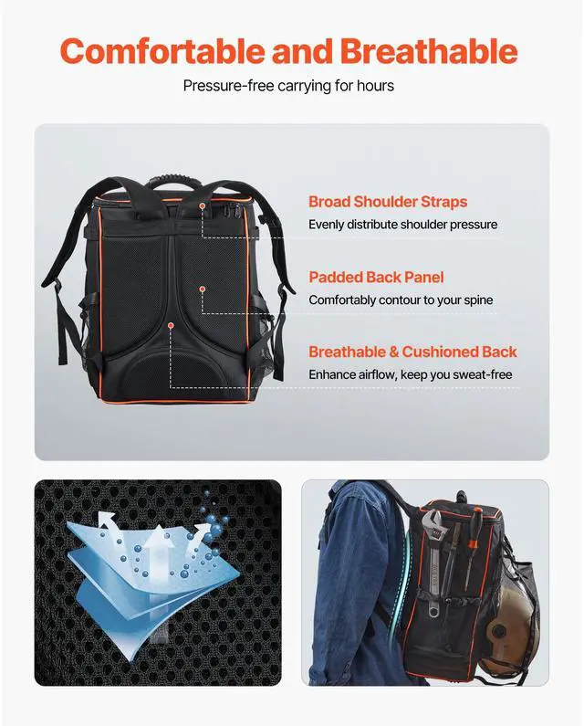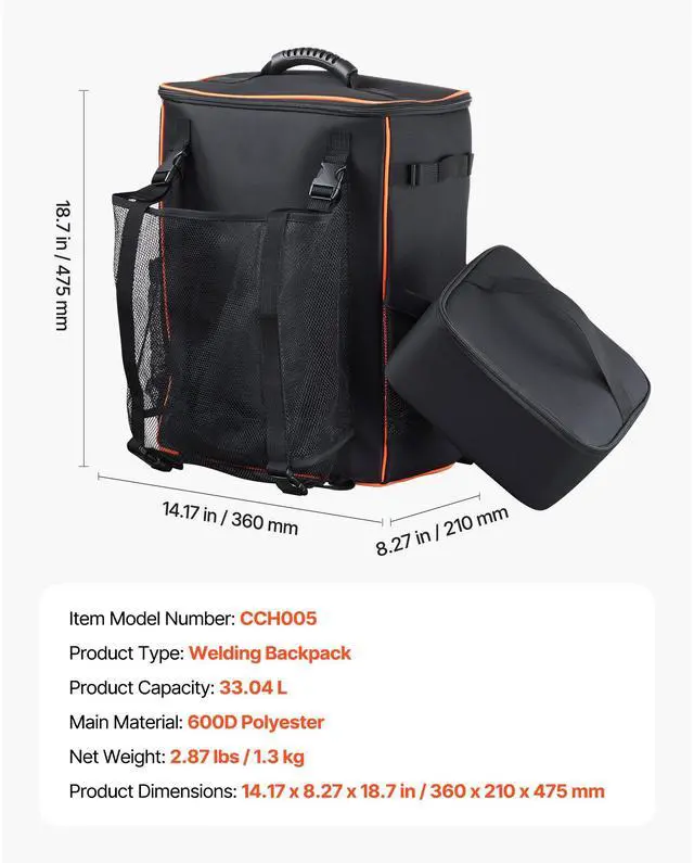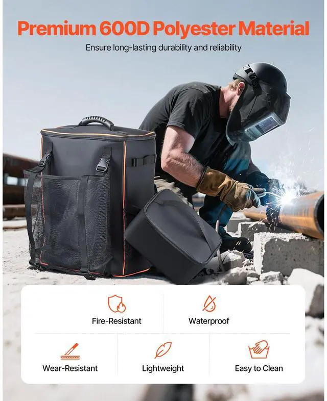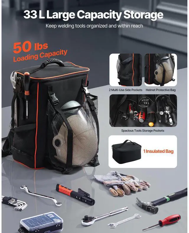 VEVOR 35.6L Welding Backpack 600D Polyester Welder Backpack for Tools and Helmet Large-Capacity Storage Reduce Carrying Pressure Breathable & Comfortable Durable Material Thoughtful Designs Multi-Functional Use