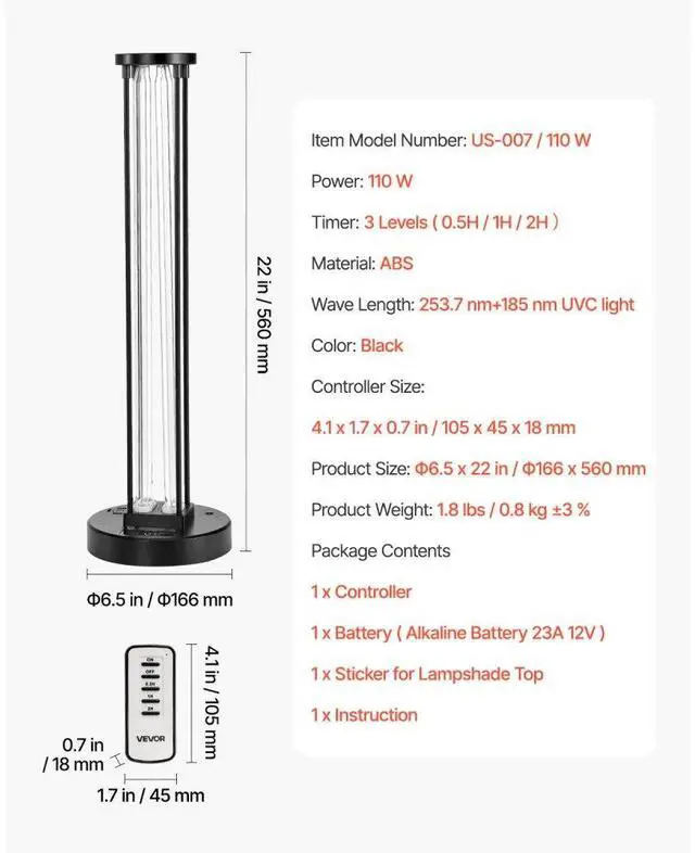 Length: 253.7 nm+185 nm UV light, Color: Black, Item