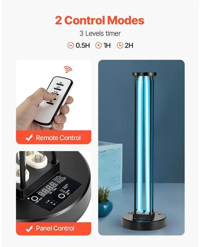 UV Light 110W Ultraviolet Lamp with Ozone Purifier with 30/60/120 Minutes Timer UV-C & Ozone Combo Premium Quartz Tube with Extended Life Easy Remote Control with 3 Timer Settings 360° Wide Coverage for Deep Cleaning Ideal for Various Settings Compact and