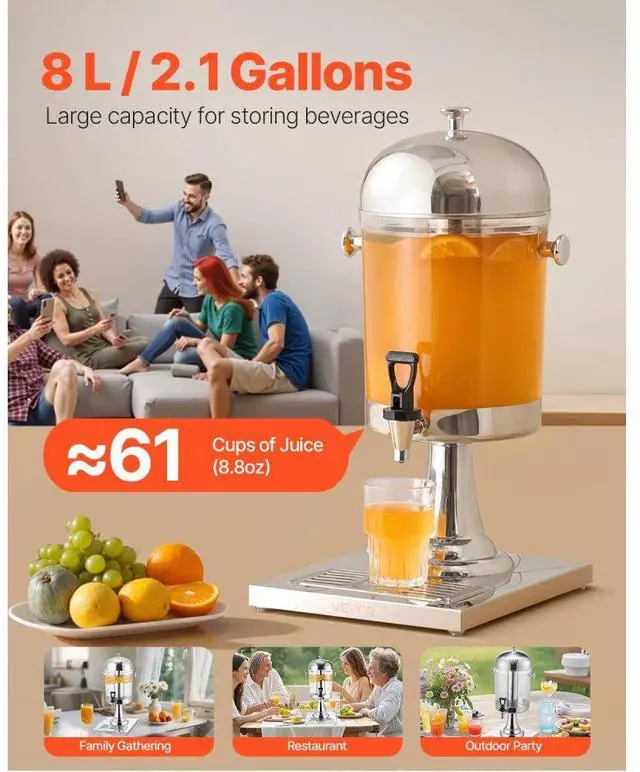 Drink Dispenser 2.1 Gal Beverage Dispenser for Parties with Spigot Tray Continuous Beverage Supply No Drip Spigot BPA-Free More Thoughtful