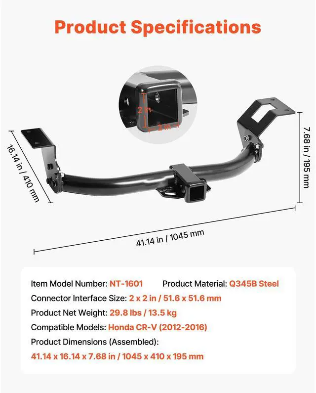 VEVOR Class 3 Trailer Hitch Tow Hitch with 2" Receiver for 2012-2016 Honda CR-V Compatible Model Easy-peasy Installation Built to Last Towing Power Super Versatile Compact & Convenient