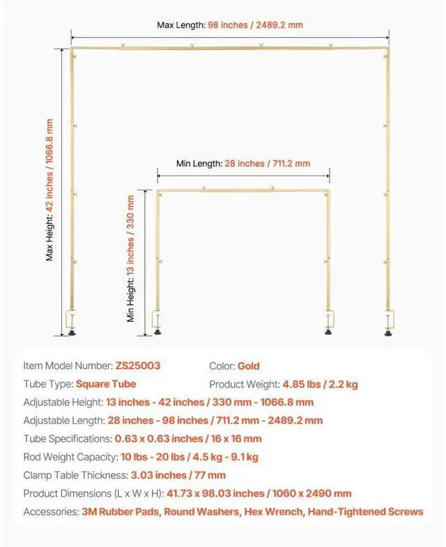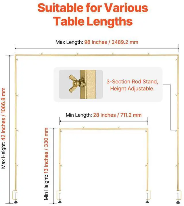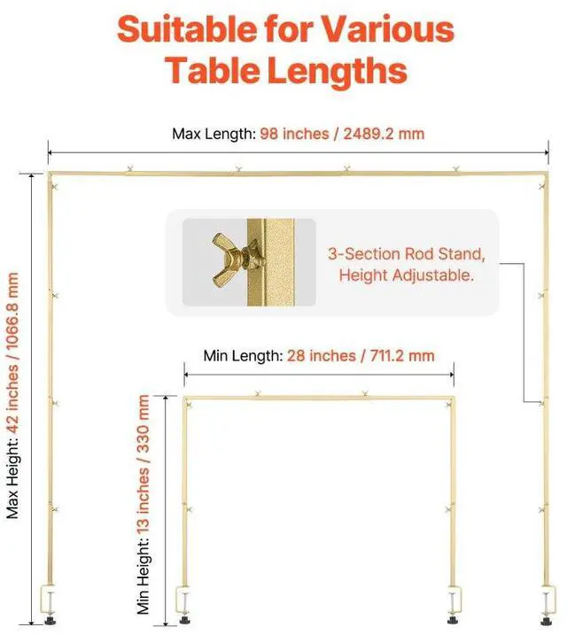 Over The Table Rod Stand with Clamp Party Arch Frame Decor 28"-98" L Adjustable Practical Rod Frame High Quality Quick Installation Your Ideal Party Companion Thoughtful Design Ideal for Limited Spaces