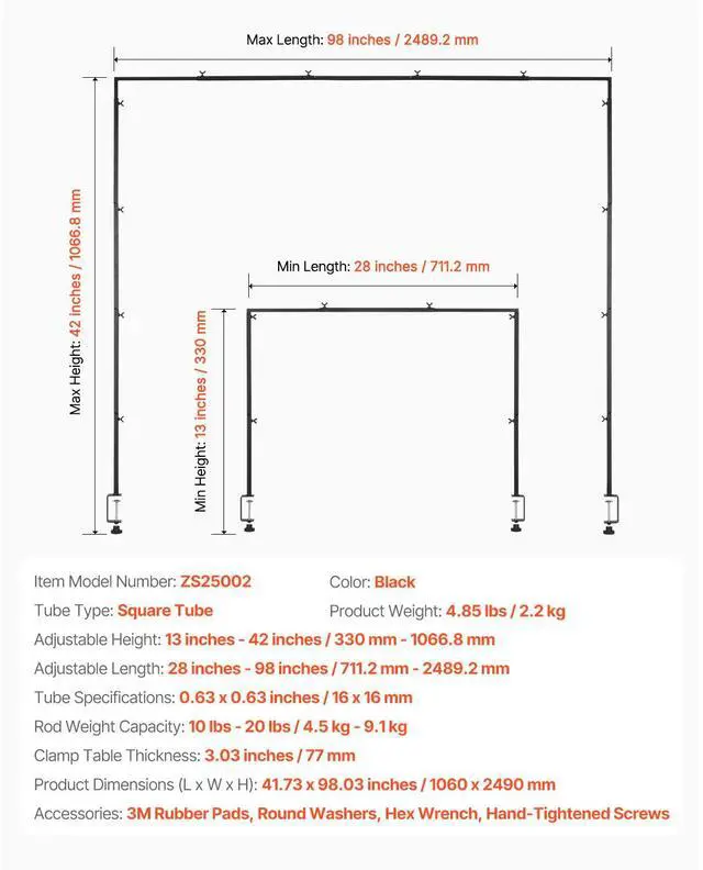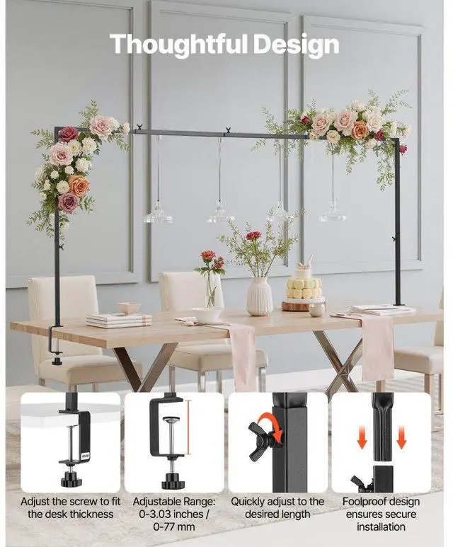 Over The Table Rod Stand Metal Arch Frame 28"-98" Length Adjustable Clamp Decor Practical Rod Frame High Quality Quick Installation Your Ideal Party Companion Thoughtful Design Ideal for Limited Spaces