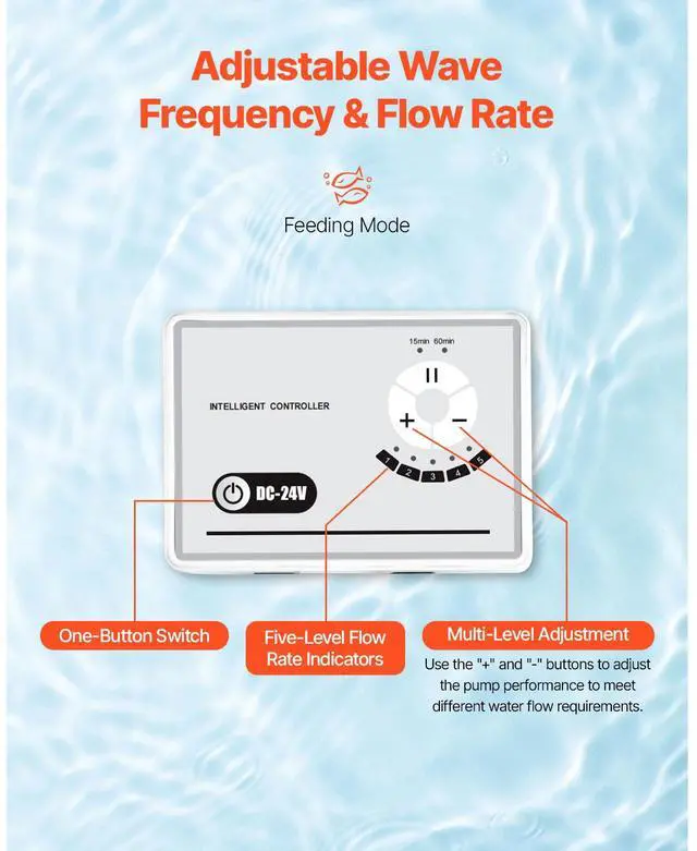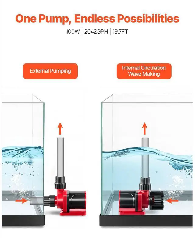 Aquarium 24V DC Water Pump with Controller 100W 2642GPH Wave Maker Return Pump Create Natural Ocean Currents Quiet Design Multiple Placement Options Easy to Disassemble and Clean Widely Applicable
