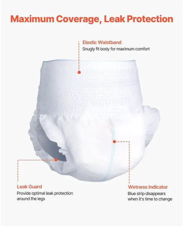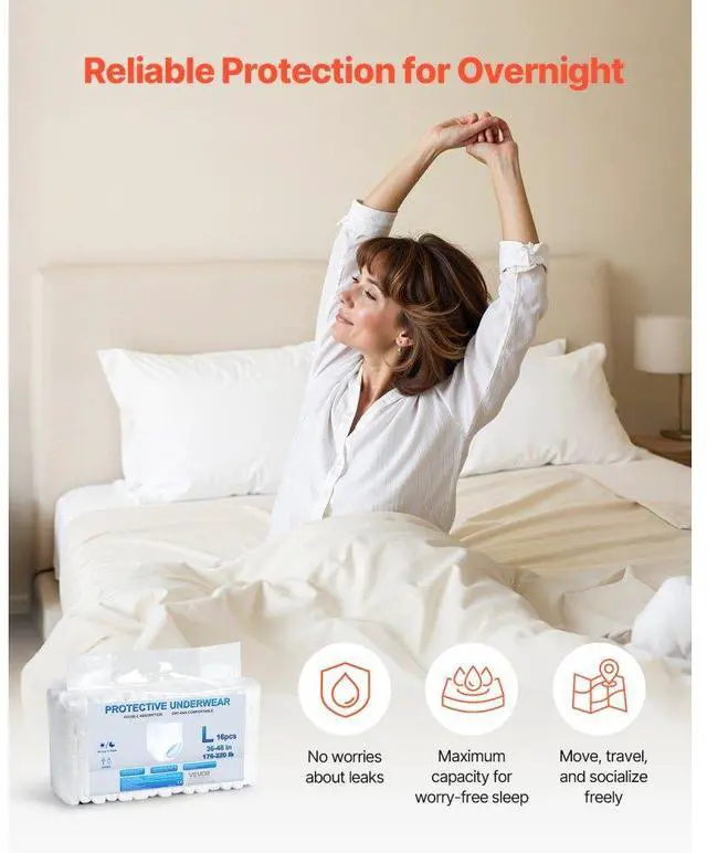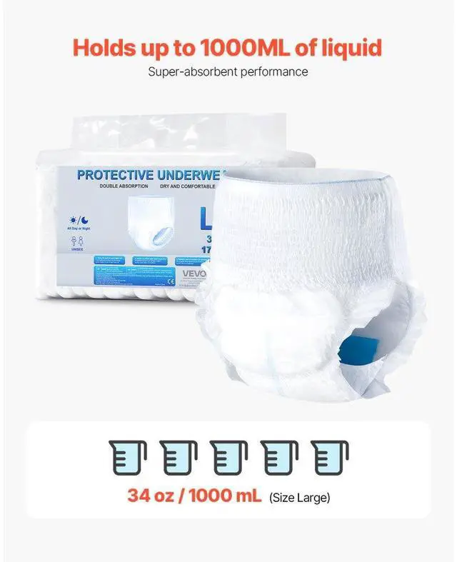 VEVOR Adult Incontinence Underwear Protective Underwear for Men & Women L Size All-around Leak Protection Soft and Breathable Design High-Elastic Design How to Choose Satisfy You Needs Wetness