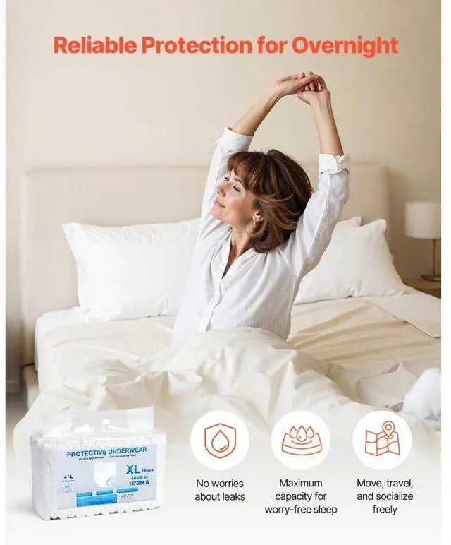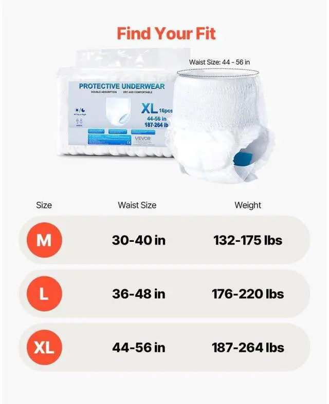 VEVOR Adult Incontinence Underwear Protective Underwear for Men & Women XL Size All-around Leak Protection Soft and Breathable Design High-Elastic Design How to Choose Satisfy You Needs Wetness
