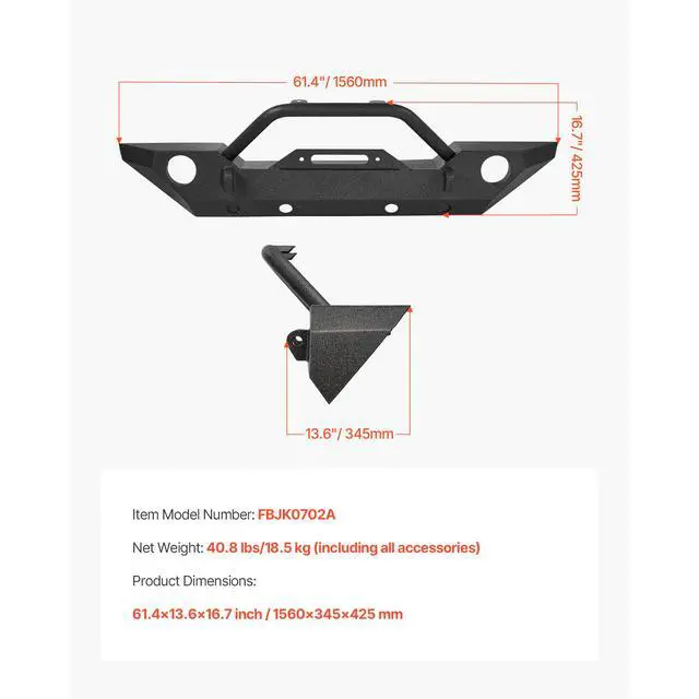 • VEVOR Front Bumper Compatible with 2007-2018 Wrangler JK/JKU with Winch Plate
