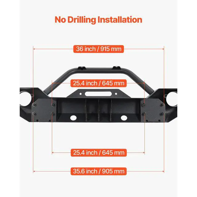 VEVOR Front Bumper Compatible with 2007-2018 Wrangler JK/JKU with Winch Plate Support Winch Installation 3mm Heavy-Duty Steel Enhanced Durability Quick Installation Enhanced Protection Safer Driving Item