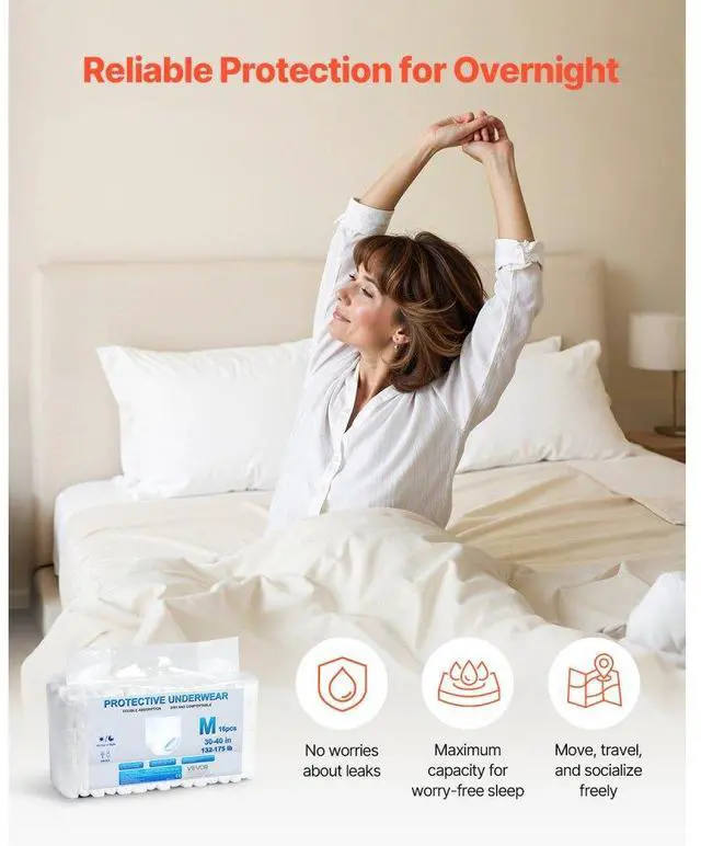 VEVOR Adult Incontinence Underwear Protective Underwear for Men & Women M Size All-around Leak Protection Soft and Breathable Design High-Elastic Design How to Choose Satisfy You Needs Wetness