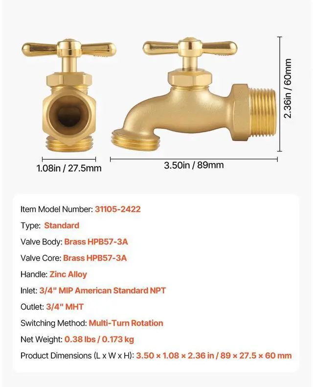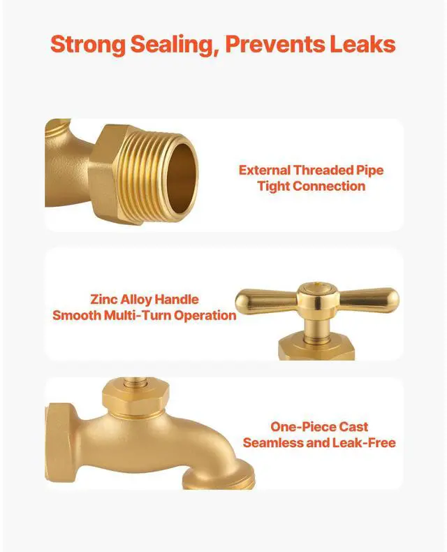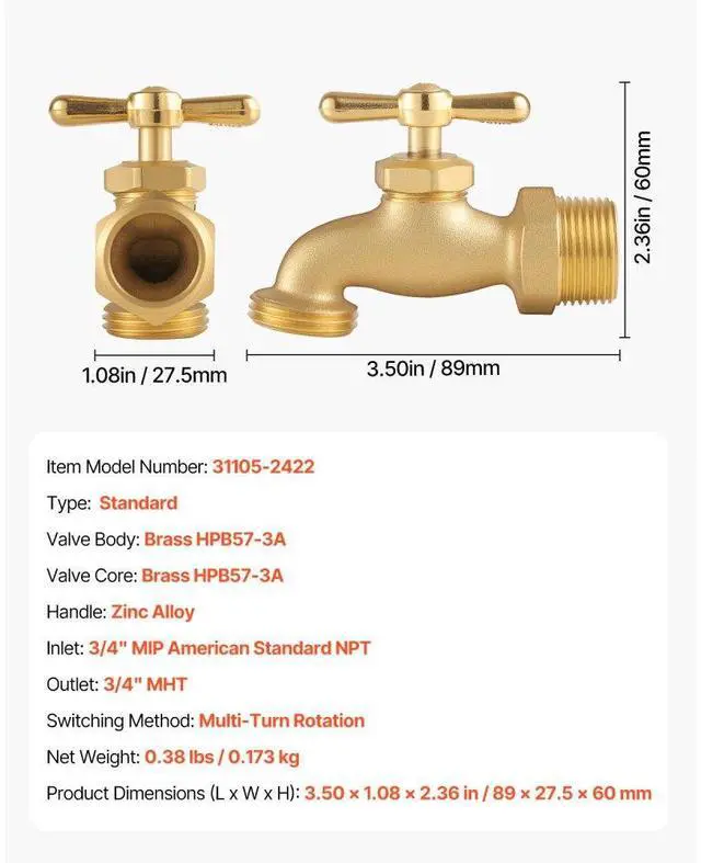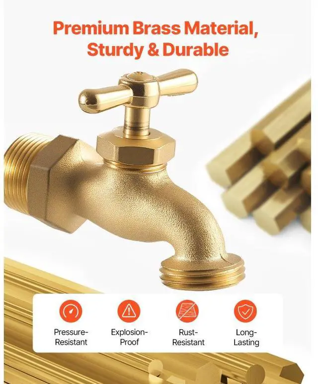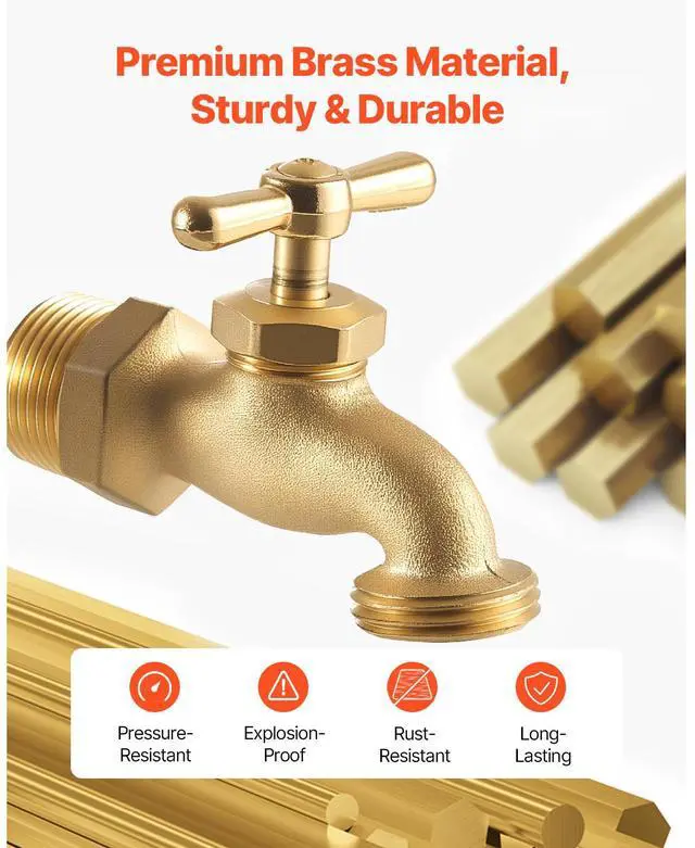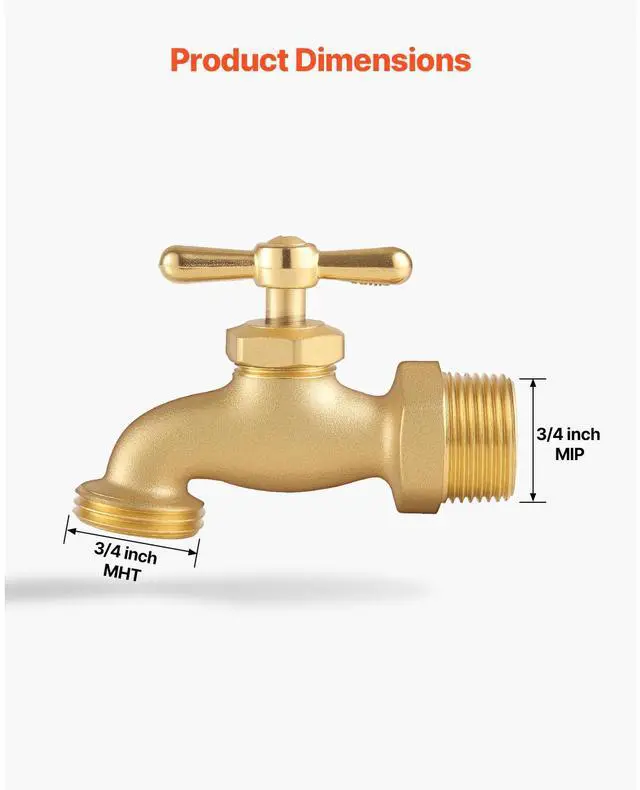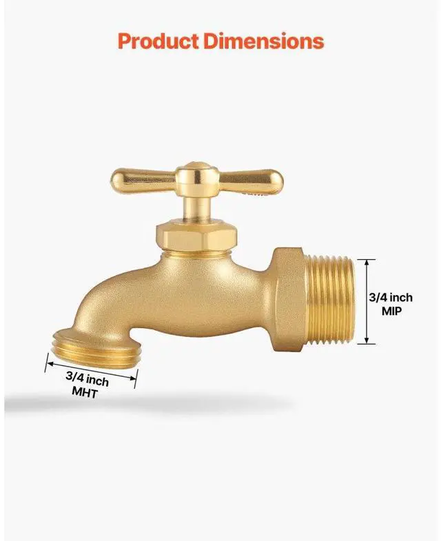Hose Bibb 3/4" MIP x 3/4" MHT Connection Brass Outdoor Water Faucet Spigot Durable and Long-Lasting Strong Compatibility Easy Installation Drip and Leak-Proof Wide Application Precise