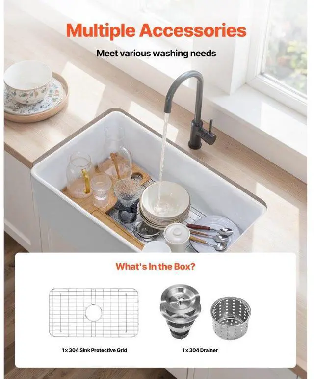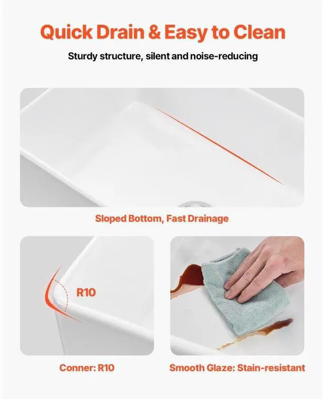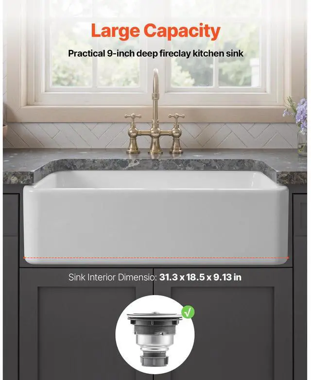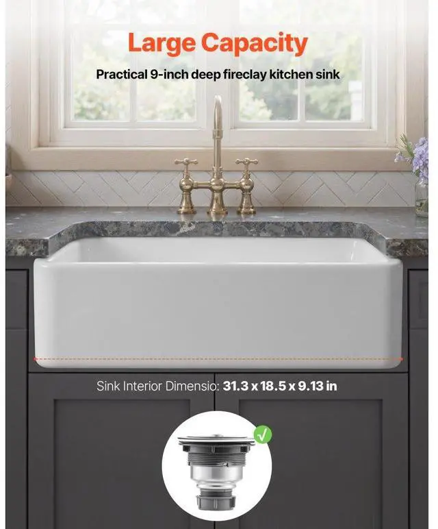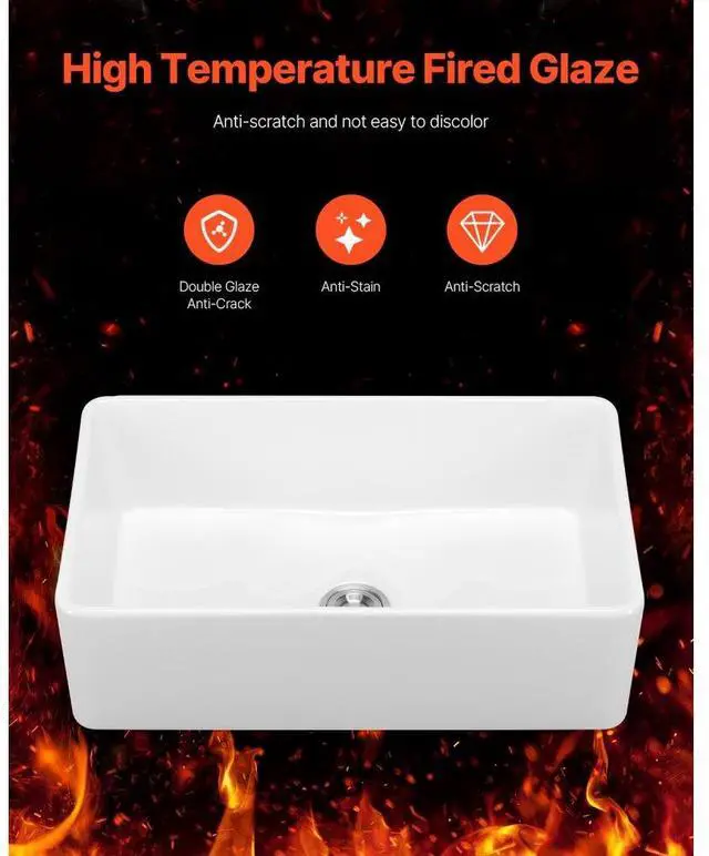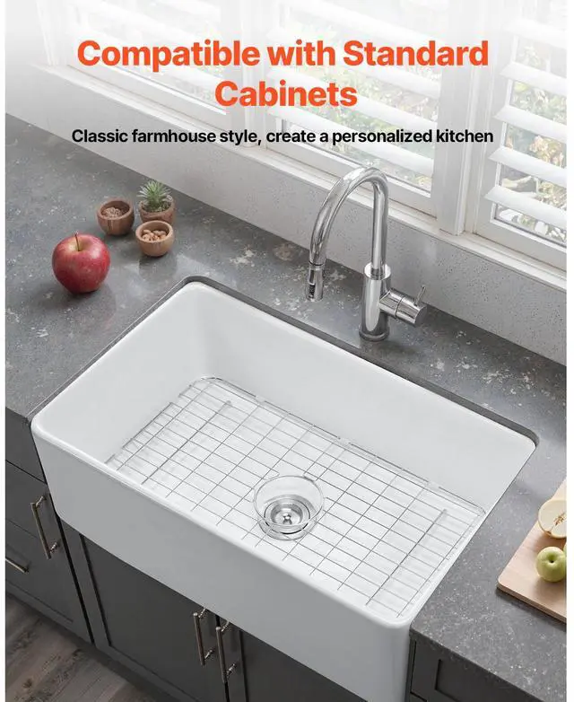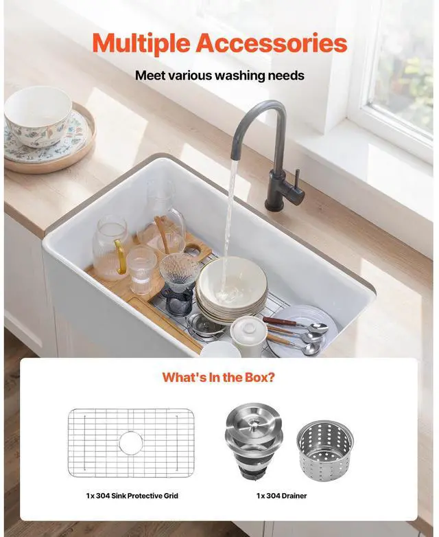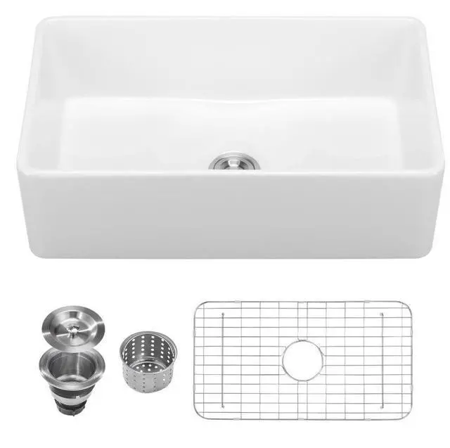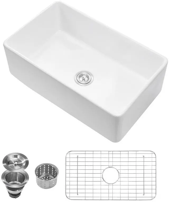 33.5 x20 in Farmhouse Sink Undermount Kitchen Single Bowl Basin Fireclay White High-Temperature Durable Material Extra-Large Capacity High-Quality Accessories User-Friendly Design Easy Installation Multiple