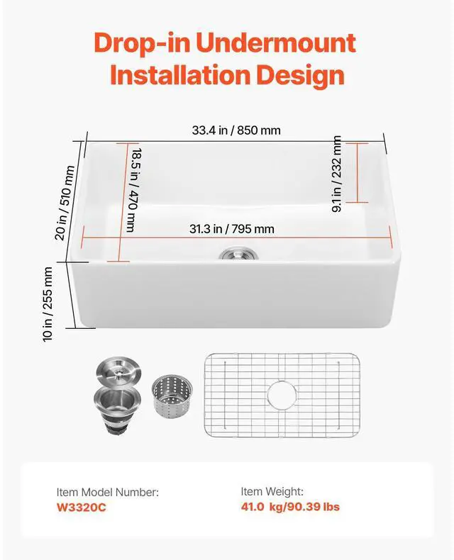 Model Number: W3320C, Material: Fireclay,