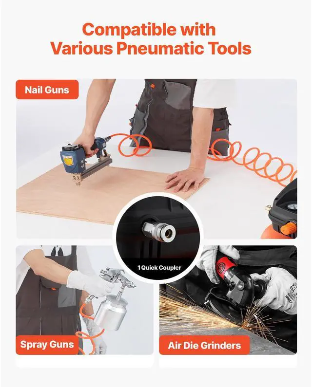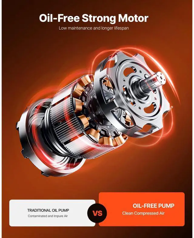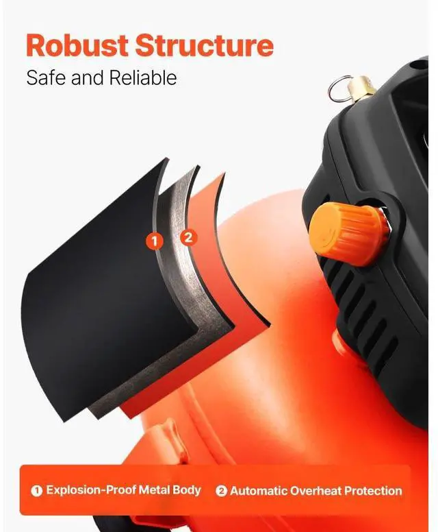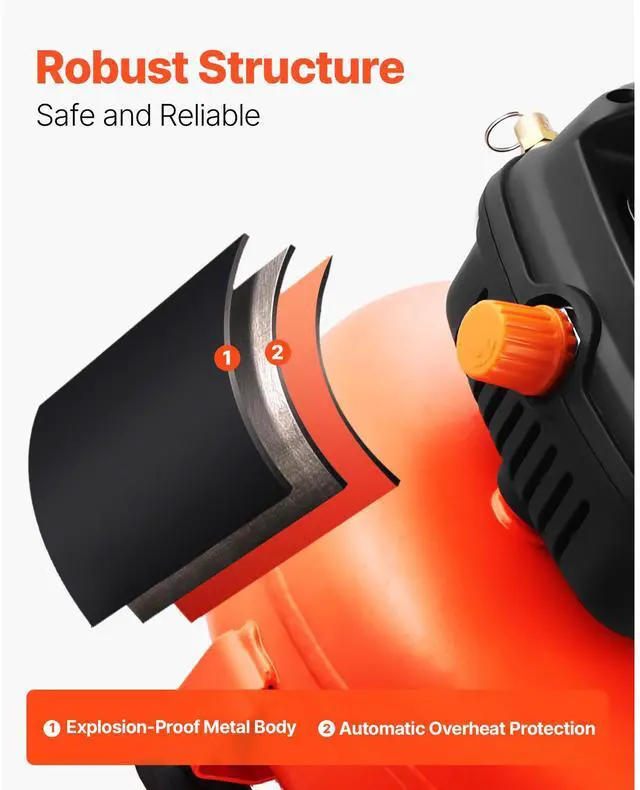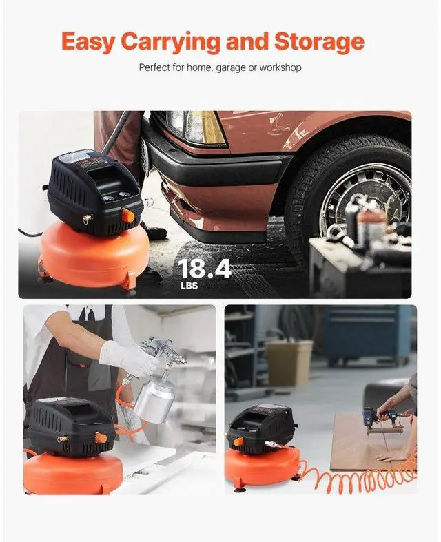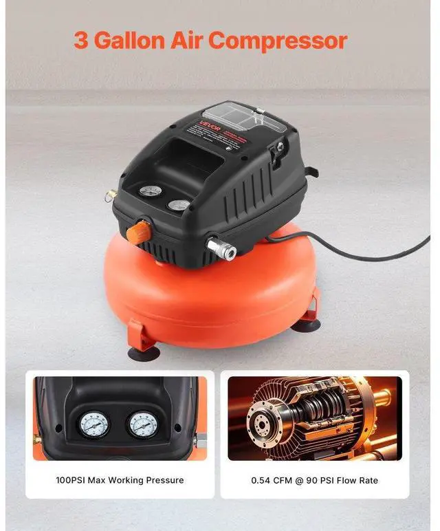 VEVOR 3 Gallon Air Compressor 1/3HP 0.54CFM @90PSI & 100PSI Max Working Pressure Oil-Free Pump Wide Applications Compact and Portable Safe and Reliable Safety Enhanced Precise Monitoring pressure