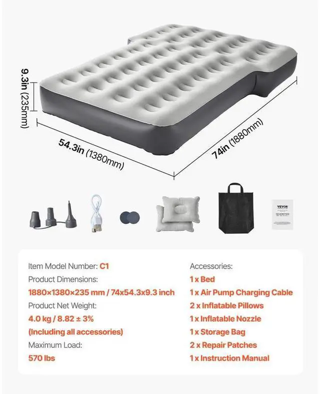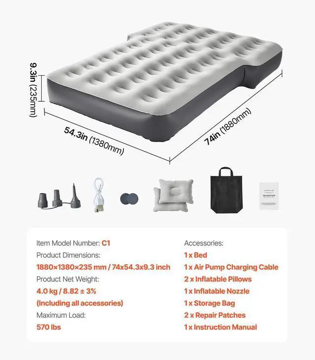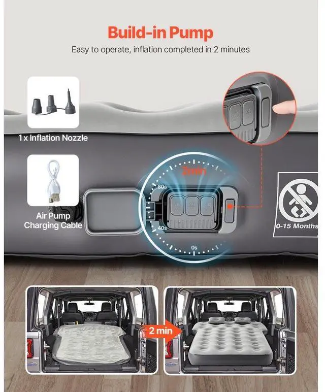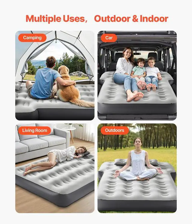 Car Air Mattress Inflatable Car Camping Travel Bed Sleeping Pad Built in Pump Custom Car Mattress Flexible Adjustment Premium Fabric Quick Inflation and Deflation Wide Application User-Friendly