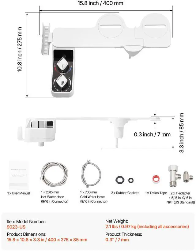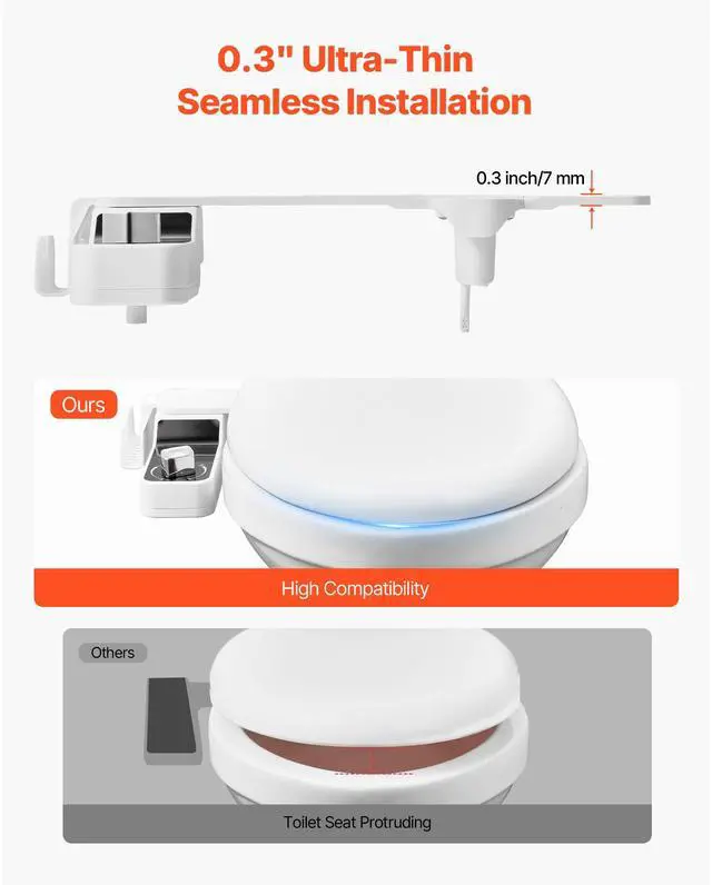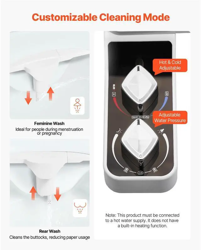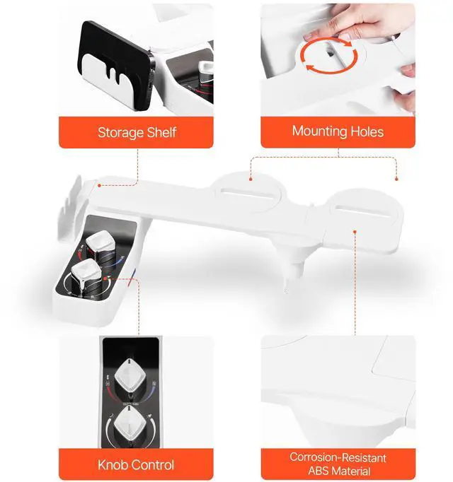 Bidet Attachment for Toilet Hot and Cold Dual Nozzles Adjustable Pressure Dual Cleaning Modes Dual Anti-Splash Design Seamless & Slim Design No Electricity Required Dual Knob Control Premium Materials Item