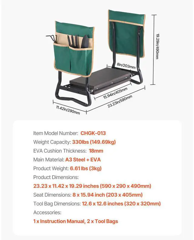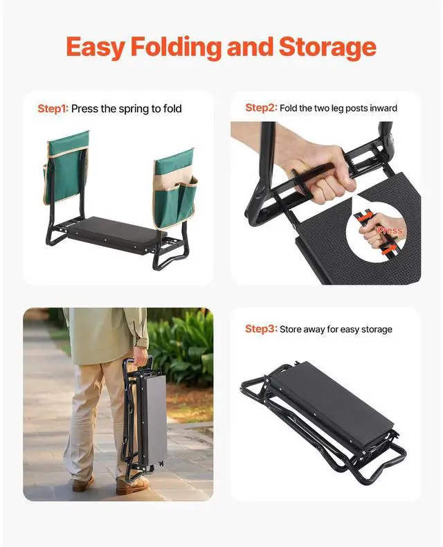 • Garden Kneeler and Seat 8" EVA Pad Folding Garden Stool Heavy Duty Garden Bench