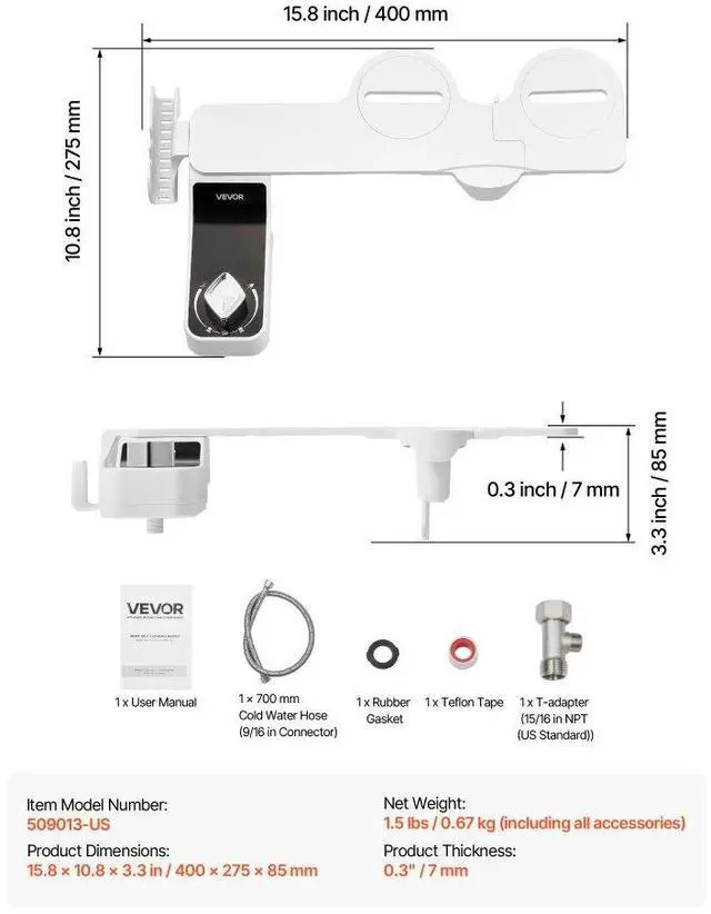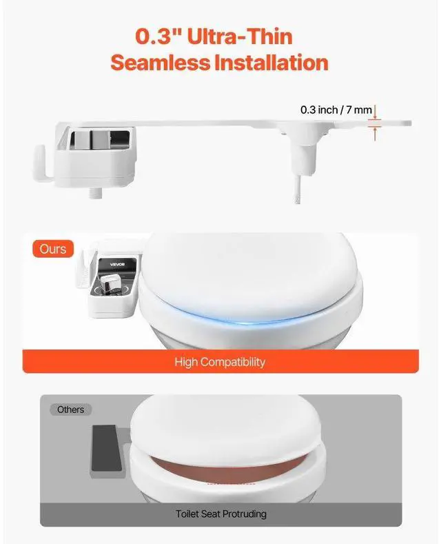 • Seamless Installation: With a sleek 0.3-inch thickness, this bidet attachment for toilet installs flush without gaps, blending easily into most toilets and complementing modern bathroom styles.