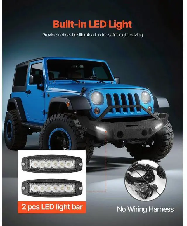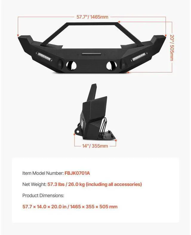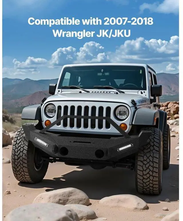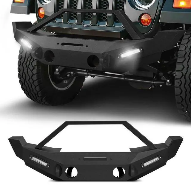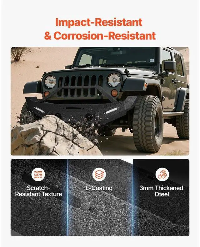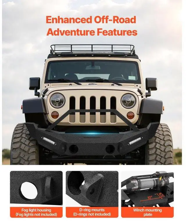VEVOR Front Bumper Compatible with 2007-2018 Wrangler JK/JKU with LED Light Bars Vehicle Fitment Support Winch Installation 3mm Heavy-Duty Steel Enhanced Durability Quick Installation Safer Driving Item