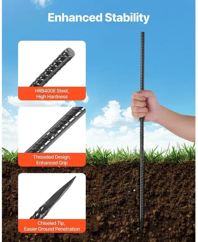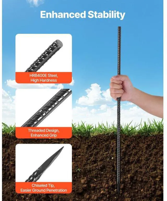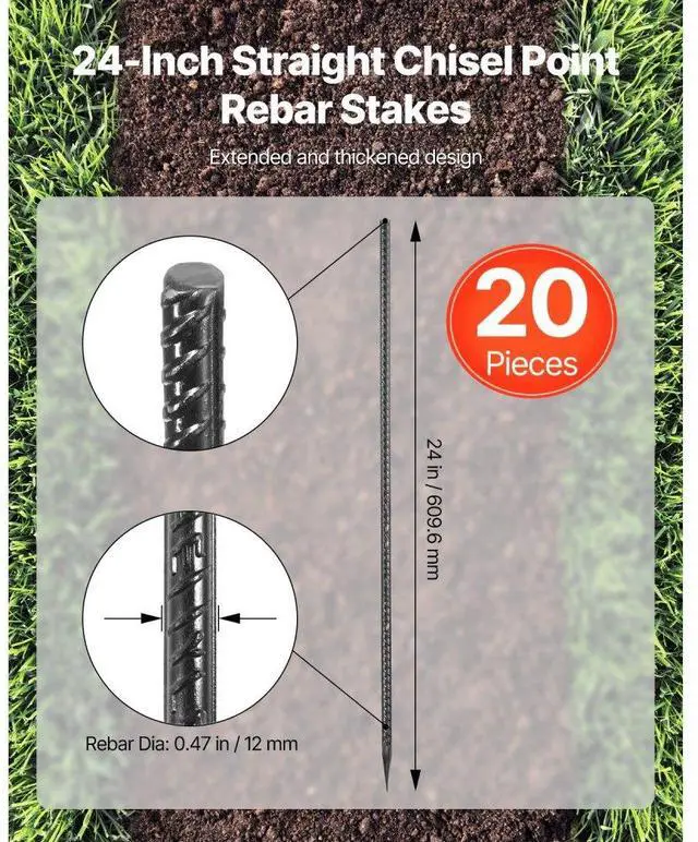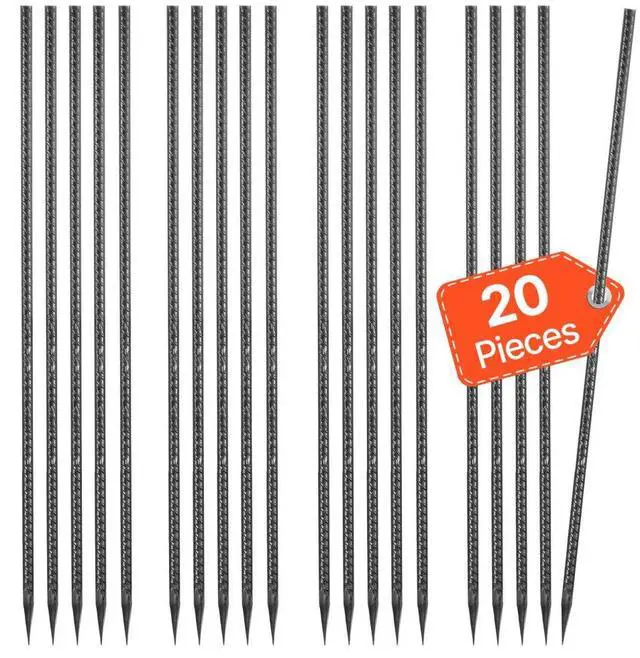 16-Inch 16 Pack Rebar Stakes Heavy Duty Straight Galvanized Steel Ground Anchors Straight Heavy Duty Rebar Stakes 0.47 -Inch Thick Galvanized Steel Black Anti-Rust Coating Easily Penetrates Various Surfaces Versatile Application Durable