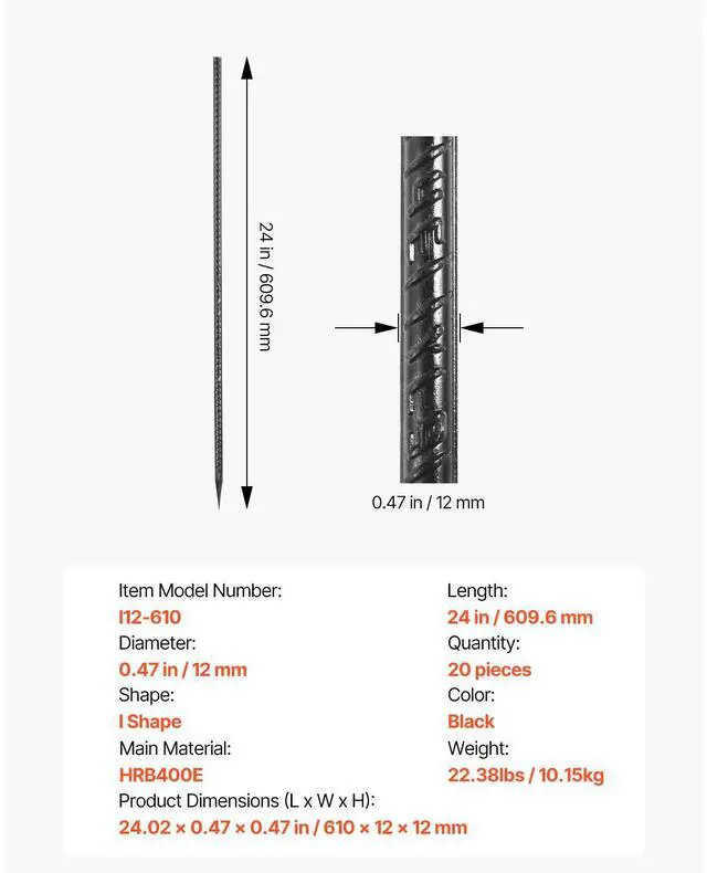 Material: HRB400E, Weight: 22.38 lbs / 10.15 kg