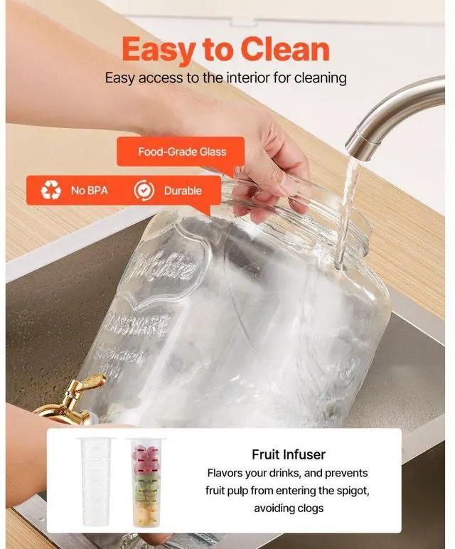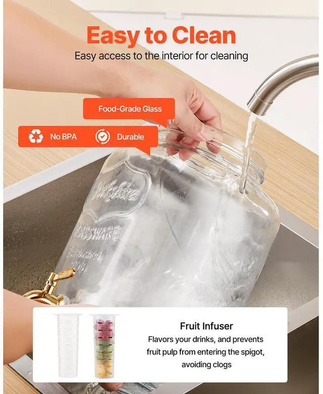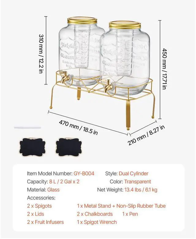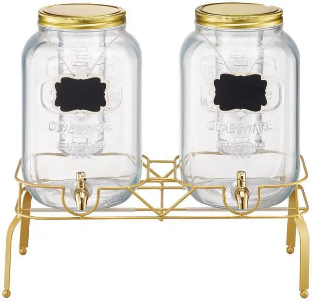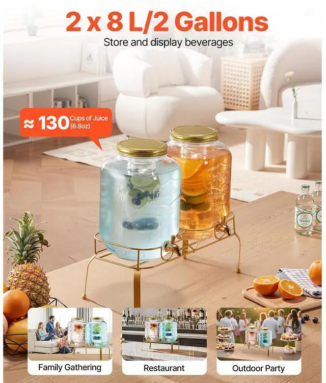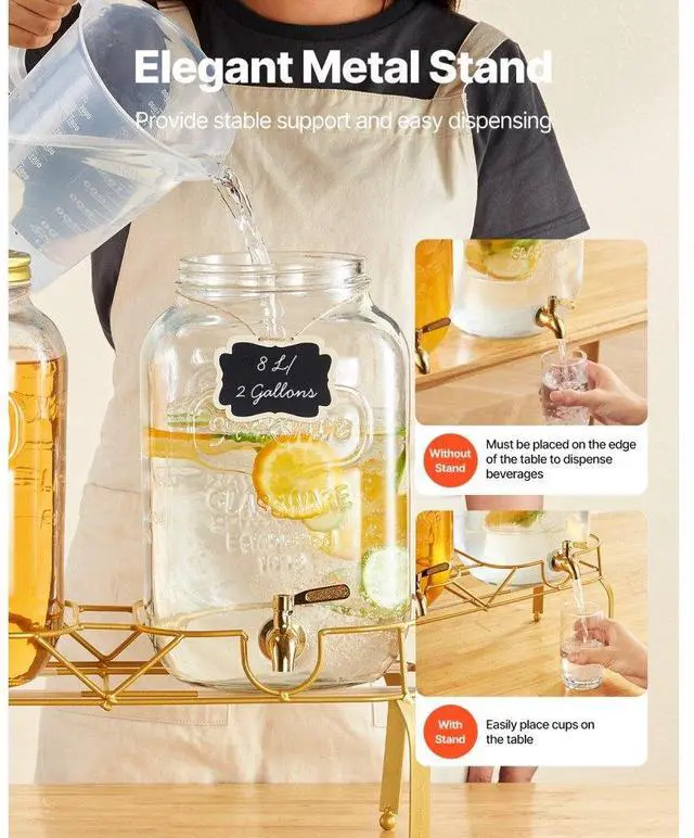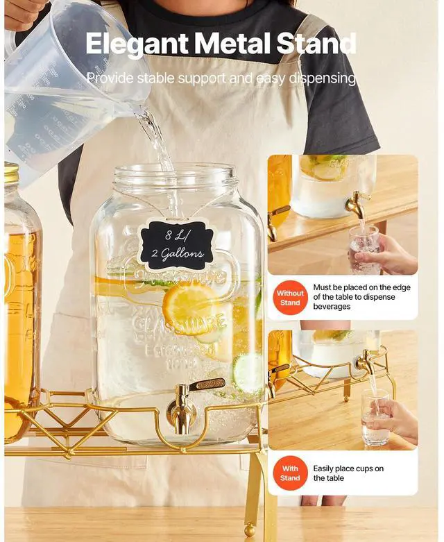 Drink Dispenser 2 Gal Beverage Dispenser for Parties Glass with Stand 2PCS Continuous Beverage Supply No Drip Spigot BPA-Free More Thoughtful