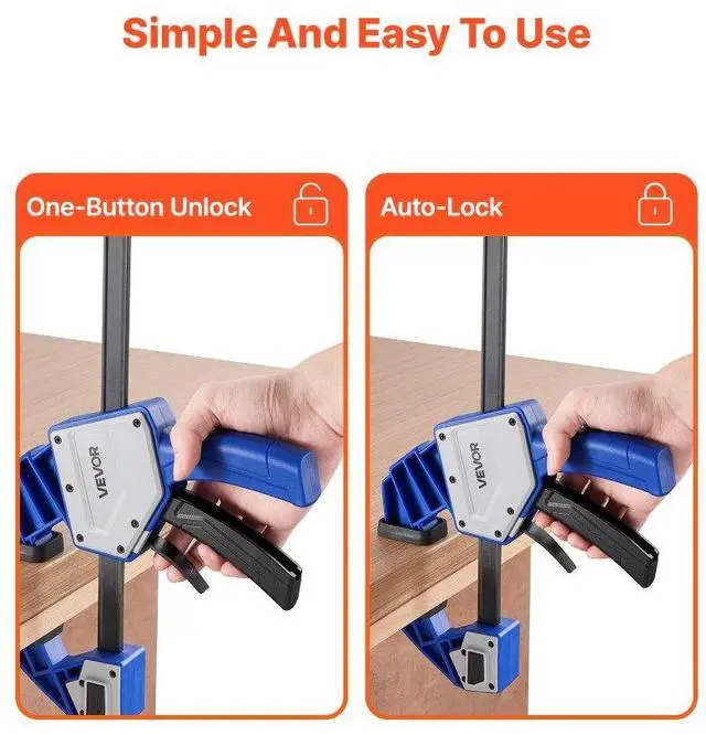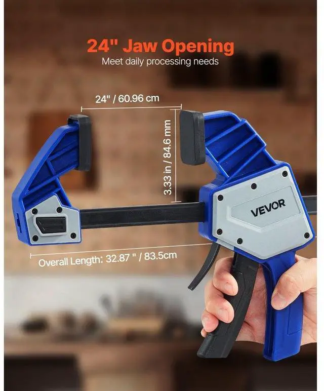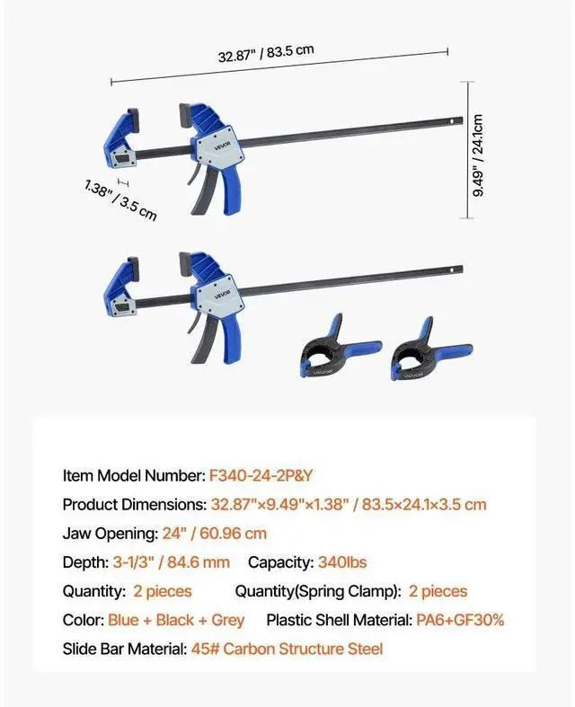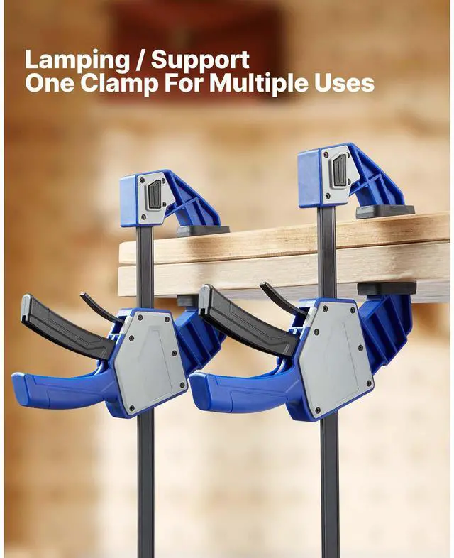 Bar Clamps for Woodworking 2-Pack 24 inch One-Handed Clamp/Spreader 340 lbs Load High-quality Materials Large Opening 340LBS Load Limit Easy to Operate Quick Switching 90° Internal Angle Design Plastic