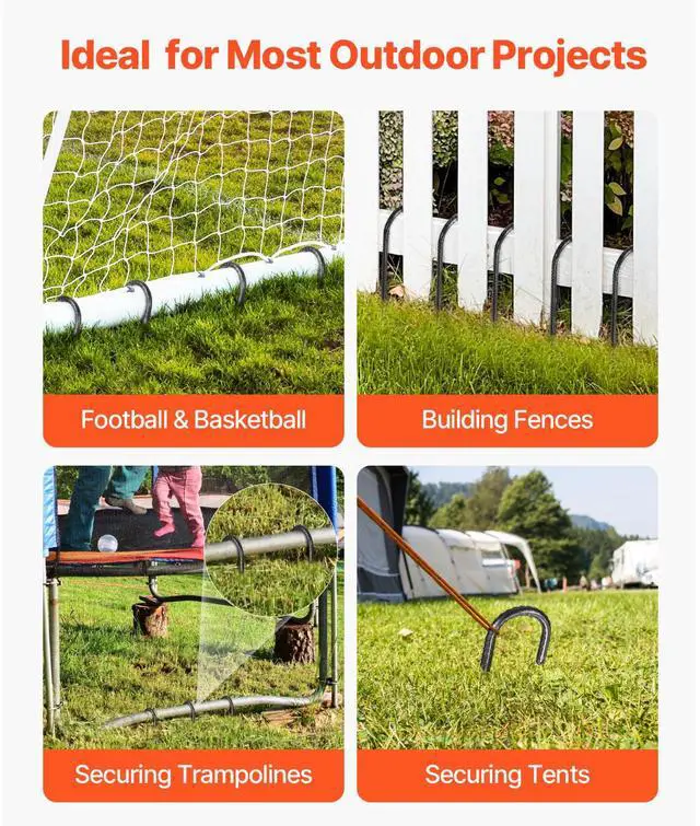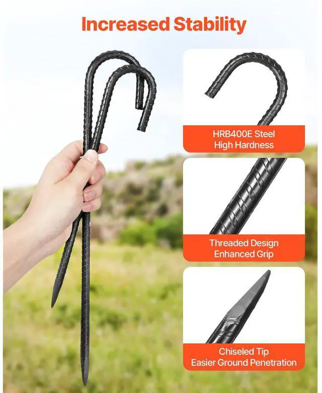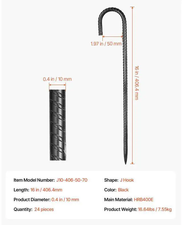 16-Inch 24 Pack Rebar Stakes Heavy Duty J Hook Galvanized Steel Ground Anchors J Hook Heavy Duty Rebar Stakes 0.4 -Inch Thick Galvanized Steel Black Anti-Rust Coating Easily Penetrates Various Surfaces Installation Method Durable