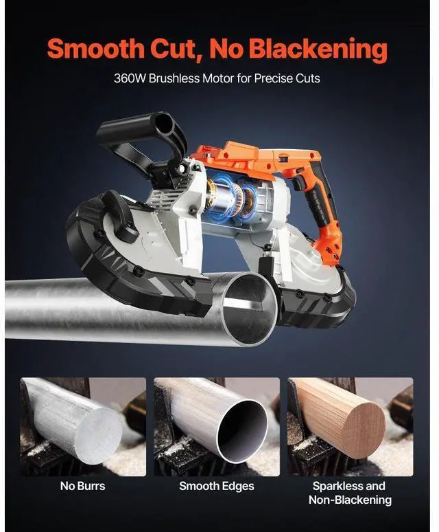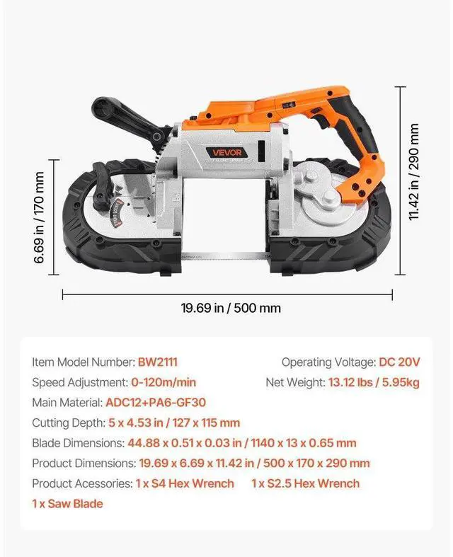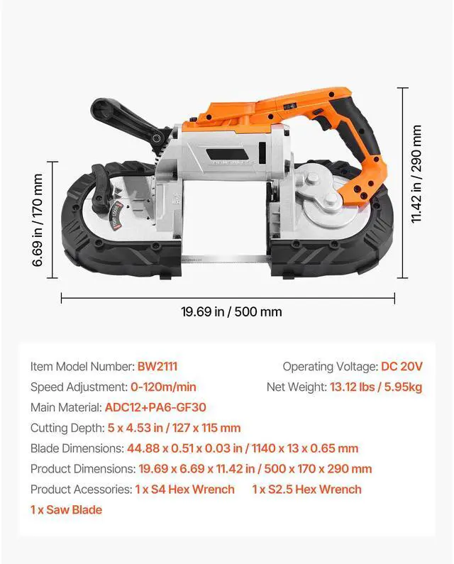 20V Portable Cordless Band Saw 5 Inches Deep Cut Variable Speed (Bare Tool) 5 in Cutting Depth No Sparks Cutting Variable Cutting Speed Simple Control Intuitive Design One Tool, Countless