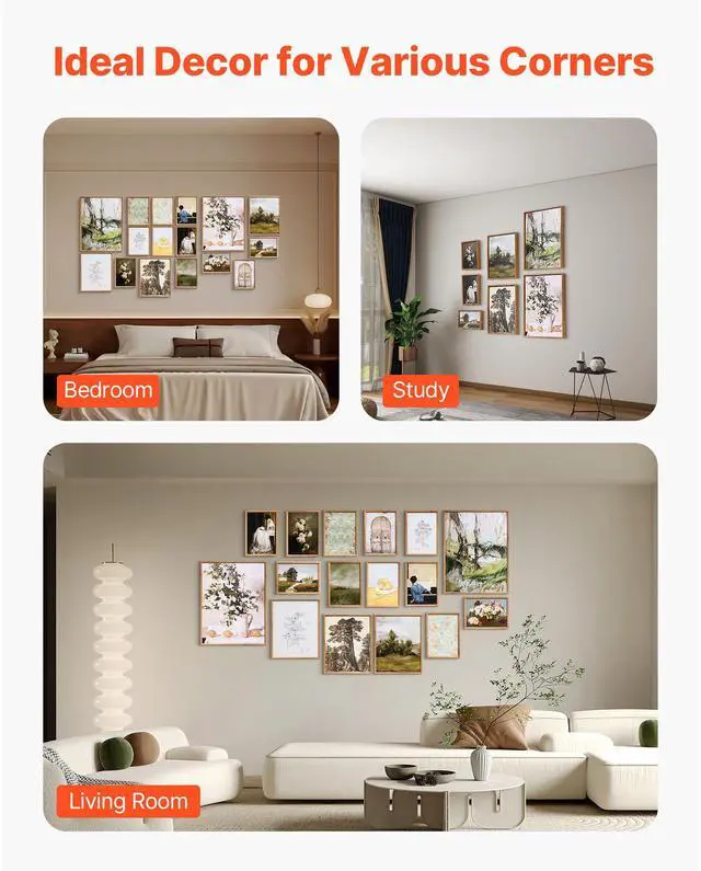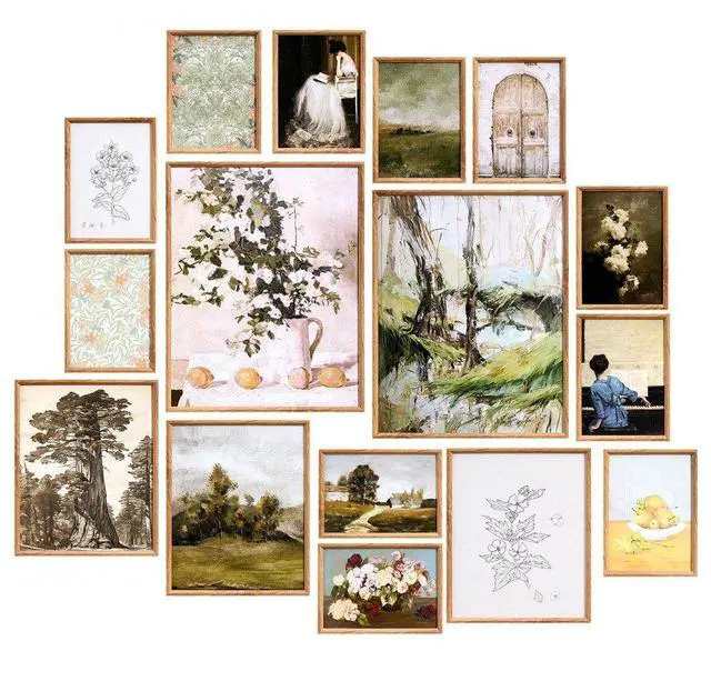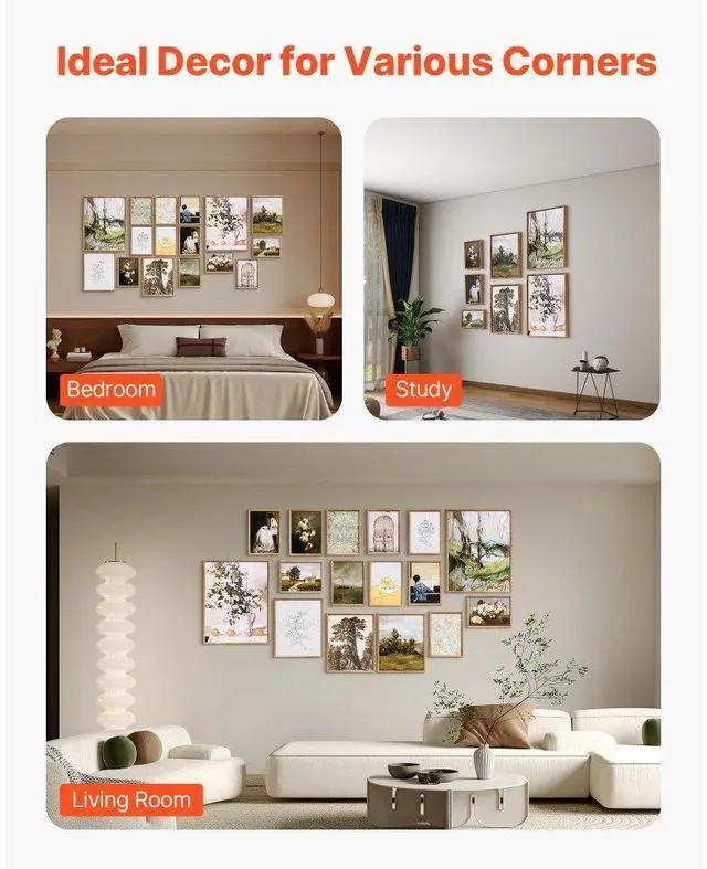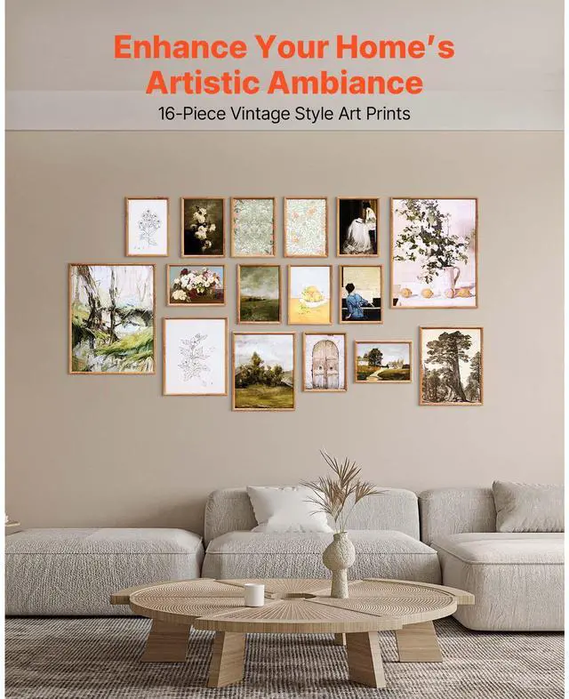 • Framed Wall Art Prints Vintage Art Decor 16 PCS for Living Room & Bedroom