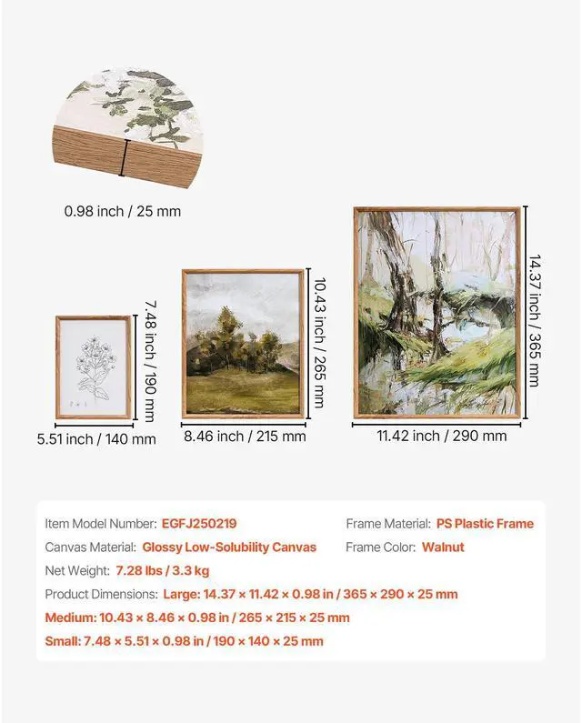 Frame Color: Walnut, Small: 7.48 x 5.51 x 0.98 in / 190 x 140 x 25 mm, Medium: 10.43 x 8.46 x 0.98 in / 265 x 215 x 25 mm, Large: 14.37 x 11.42 x 0.98 in / 365 x 290 x 25 mm, Item