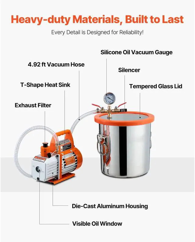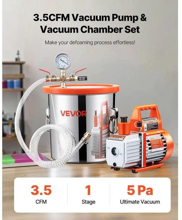 3.5 CFM Single Stage Vacuum Pump 3 Gallon Stainless Steel Degassing Chamber Kit Boost Efficiency High Performance Strong Air Tightness All-in-One Solution Easy Operation Thoughtful