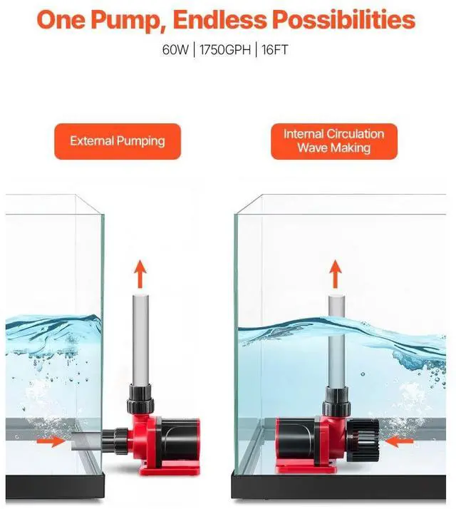Aquarium 24V DC Water Pump with Controller 60W 1750GPH Wave Maker Return Pump Create Natural Ocean Currents Quiet Design Multiple Placement Options Easy to Disassemble and Clean Widely Applicable