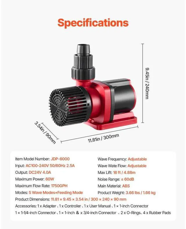 Adjustable Water Flow Max Power: 60W, Wave