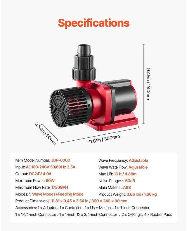 Aquarium 24V DC Water Pump with Controller 60W 1750GPH Wave Maker Return Pump Create Natural Ocean Currents Quiet Design Multiple Placement Options Easy to Disassemble and Clean Widely Applicable