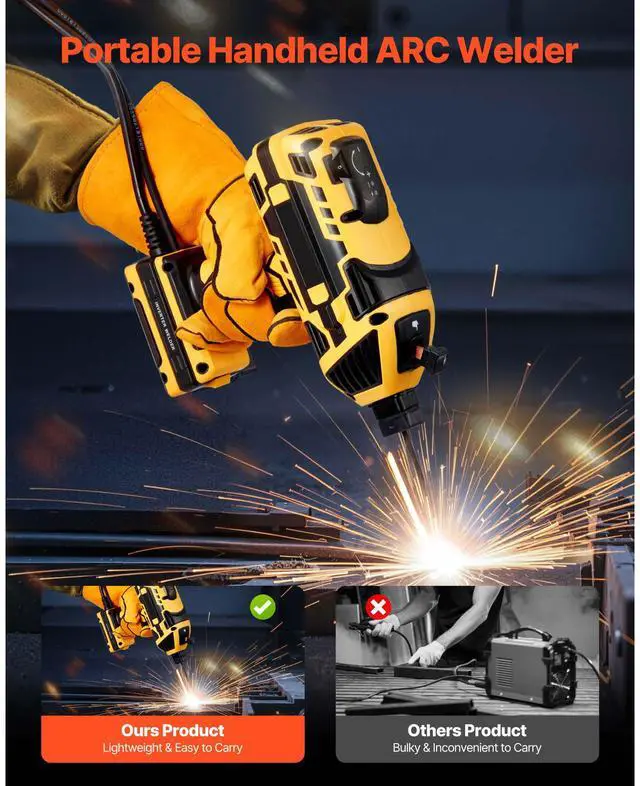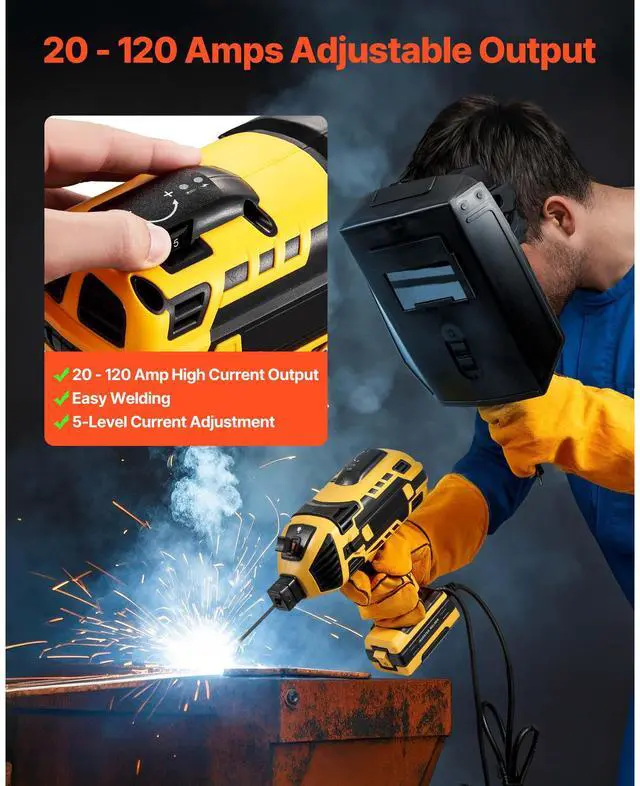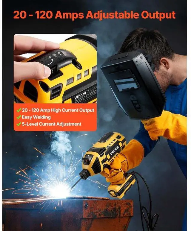 VEVOR Portable Handheld Welding Machine 20-120A with 5-Level Current Adjustment High Current Output Easy Installation Safety Protection IGBT Inverter Technology Wide Applications Weld Anytime, Anywhere