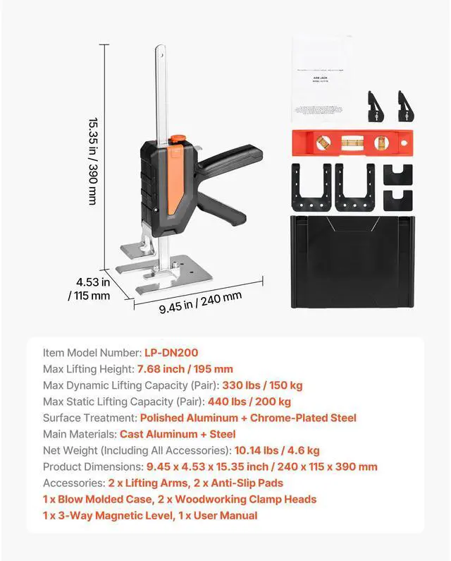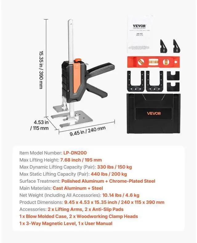 Labor Saving Arm Jack 2 PCS 440lbs Capacity 2 Modes Lifting up to 7.7" Black Built to Last Two Adjustment Modes Jack of All Trades Endless Possibilities Sleek and Durable Steady and Scratch-Free Net Weight (Including