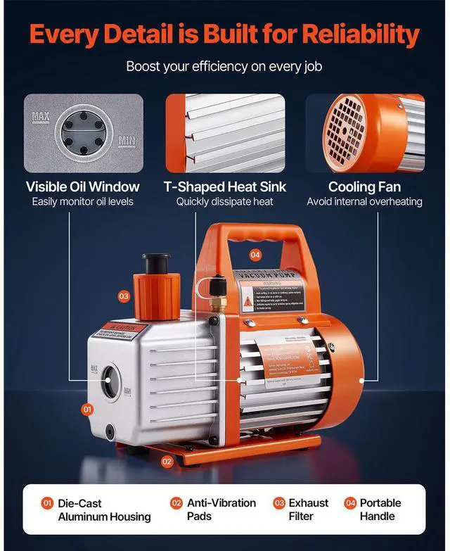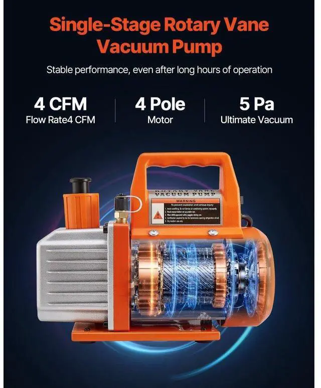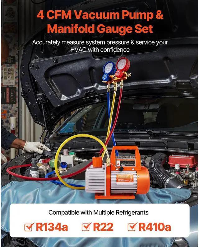 4 CFM 1/3 HP HVAC Single Stage Rotary Vane Vacuum Pump and Manifold Gauge Kit Boost Your Efficiency Accurate Monitoring Global Compatibility Multi-Stage Adjustment Easy Can Opening Reliable
