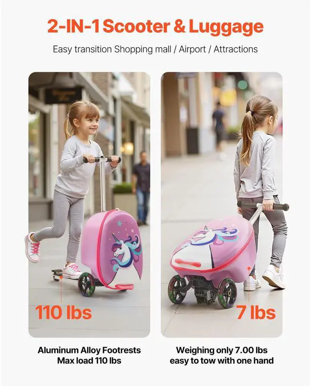 VEVOR Ride-on Luggage 20-inch Kids Scooter Suitcase with Flash Wheels Purple Fun Travel Complete Protection Adaptable Use Compact Size Organized Storage Ideal Gift