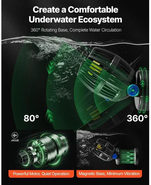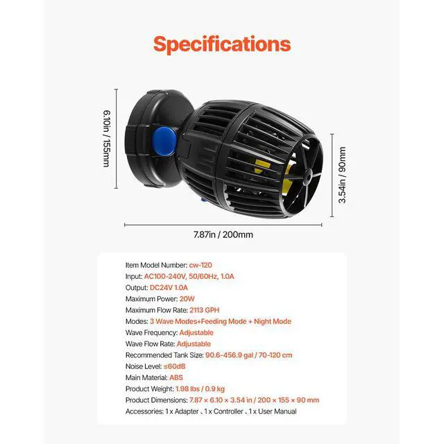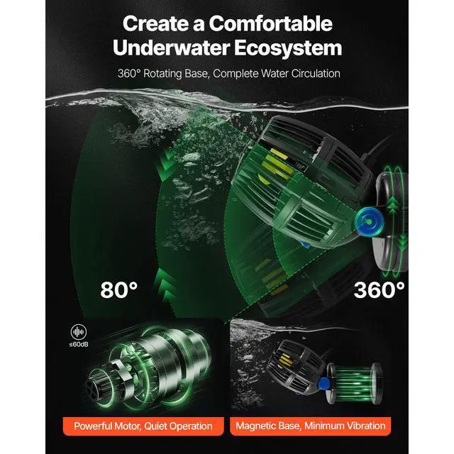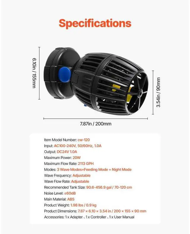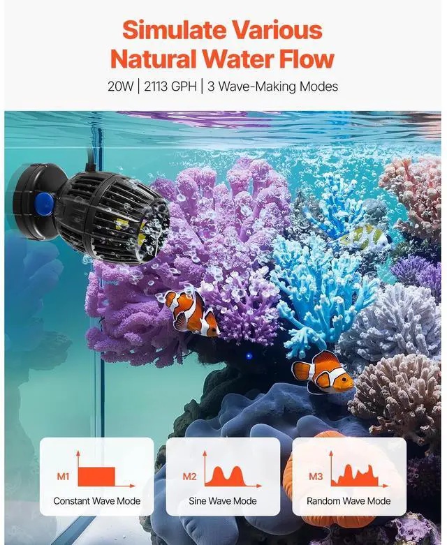 Aquarium Wave Maker with Controller 20W DC 24V Powerhead with Magnetic Base Create Natural Ocean Currents Three Wave Modes Easy Control Simple Installation Wide Compatibility Quiet