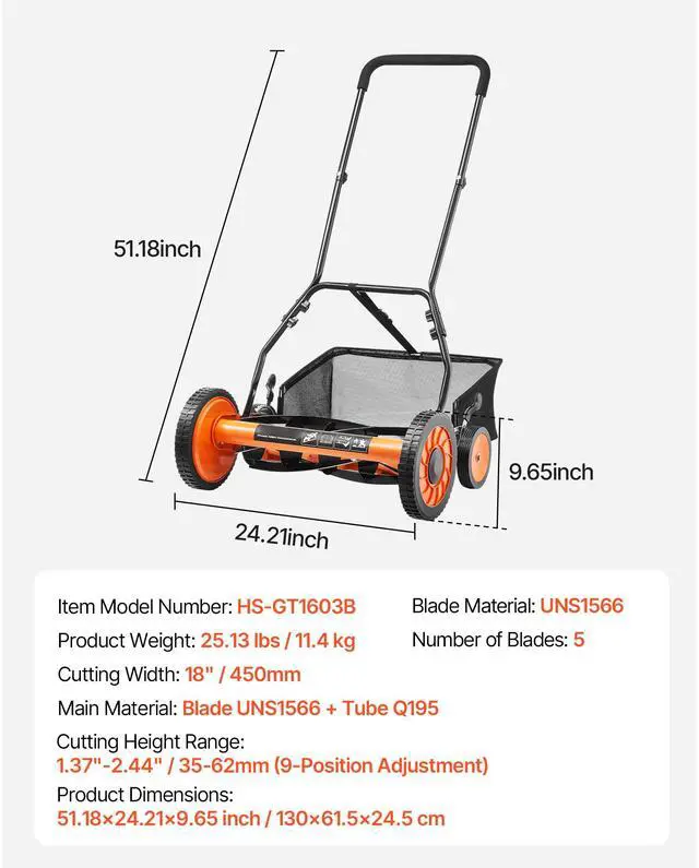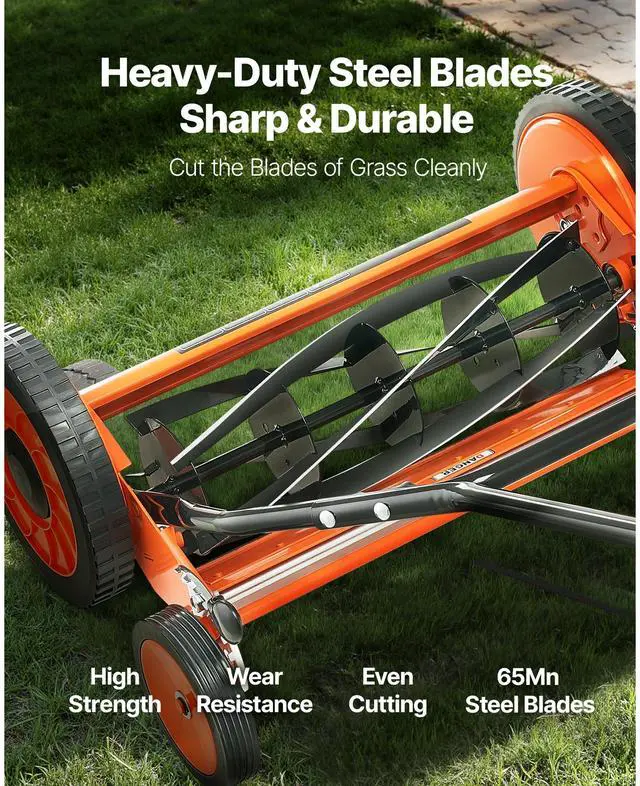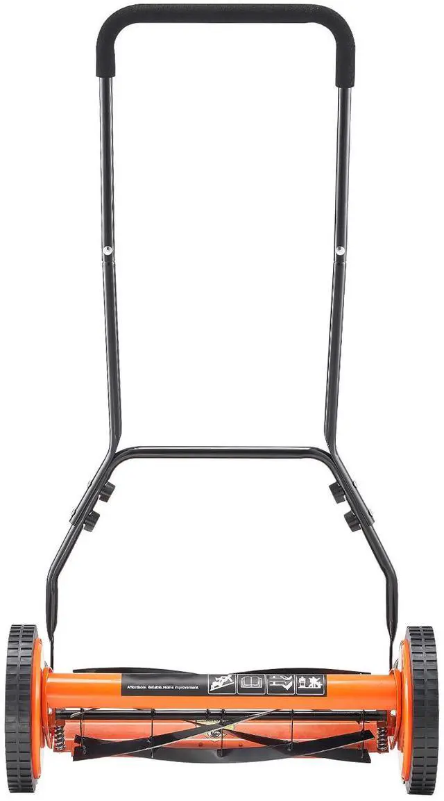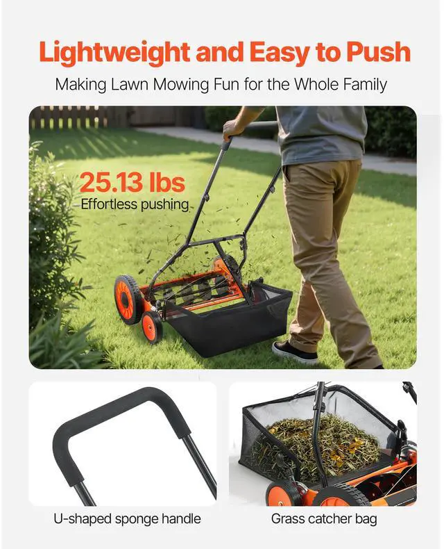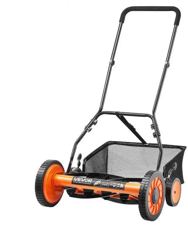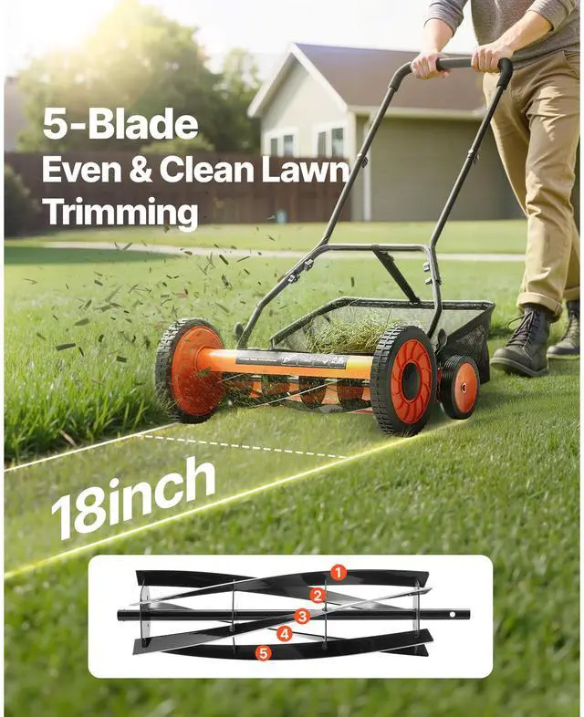 18" Manual Push Reel Lawn Mower 5-Blade Adjustable Height Grass Catcher 4 Wheels Large Wheels U-Shaped Handle Grass Catcher Bag Quick Assembly Versatile Use Environment Protection & Silent