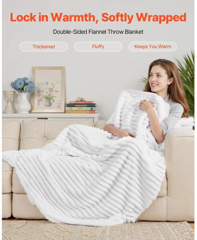 Fleece Throw Blanket Super Soft Lightweight Plush Warm 50x60 Inch/1270x1524 mm High GSM Fleece Blanket Long-Lasting Warmth Stays Like New for Longer Easy Daily Maintenance Versatile Use Low Shedding Color: White, Item