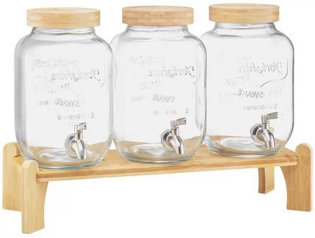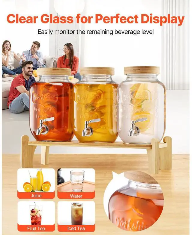 Drink Dispenser 1 Gal Beverage Dispenser for Parties Glass with Stand 3PCS Continuous Beverage Supply No Drip Spigot BPA-Free More Thoughtful